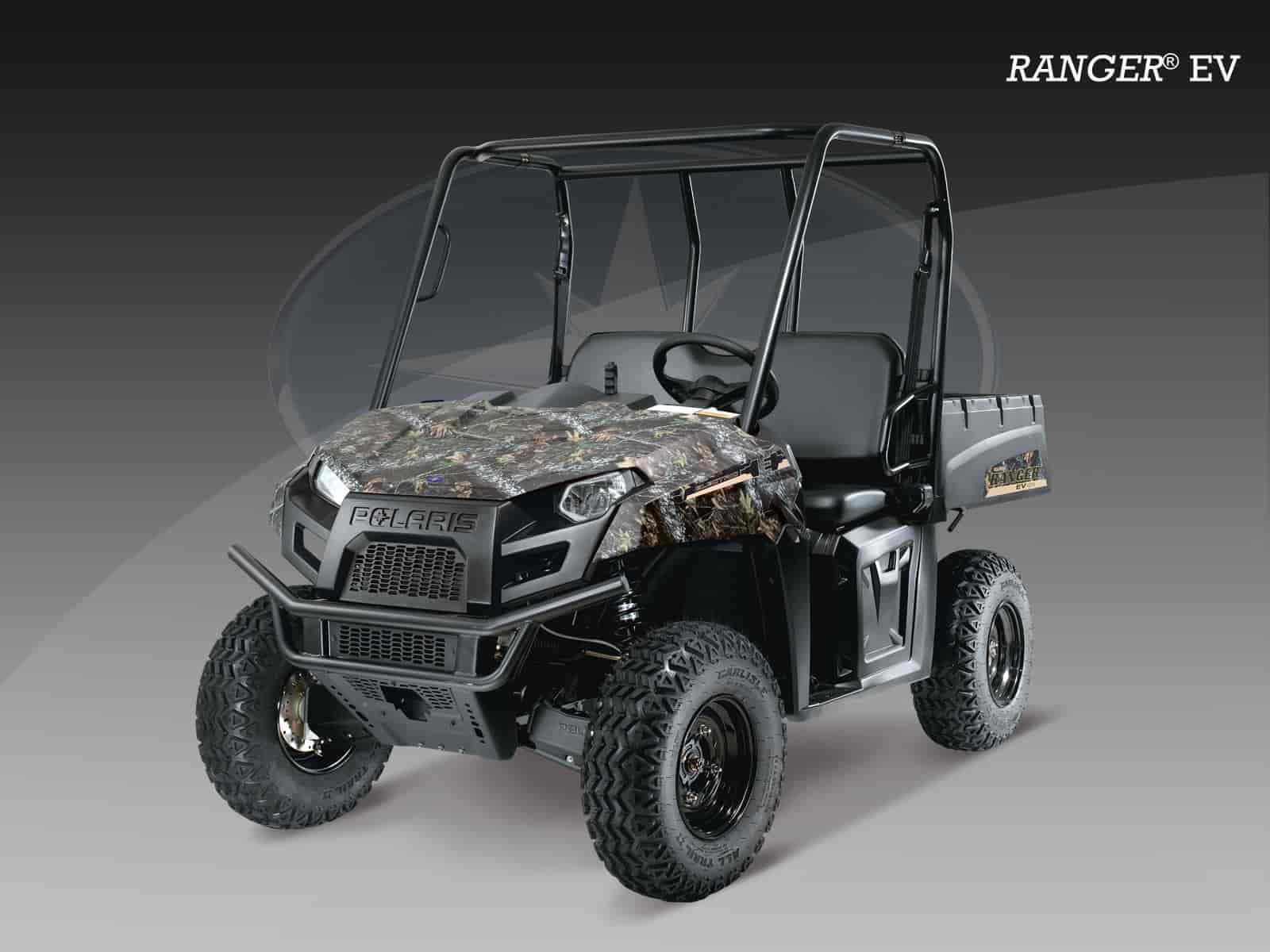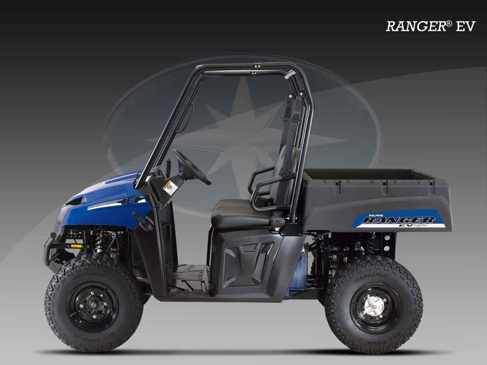 The 2010 Polaris RANGER® EV Electric-Powered Side-By-Side is the leader of the electric mid-sized side by side class. This clean & quiet vehicle dominates the competition with its unmatched ride, 25 MPH (40.2 KPH) top speed, and 50-mile Range* — making it the perfect mid-sized electric side by side for farming, ranching, hunting, and recreational riding.