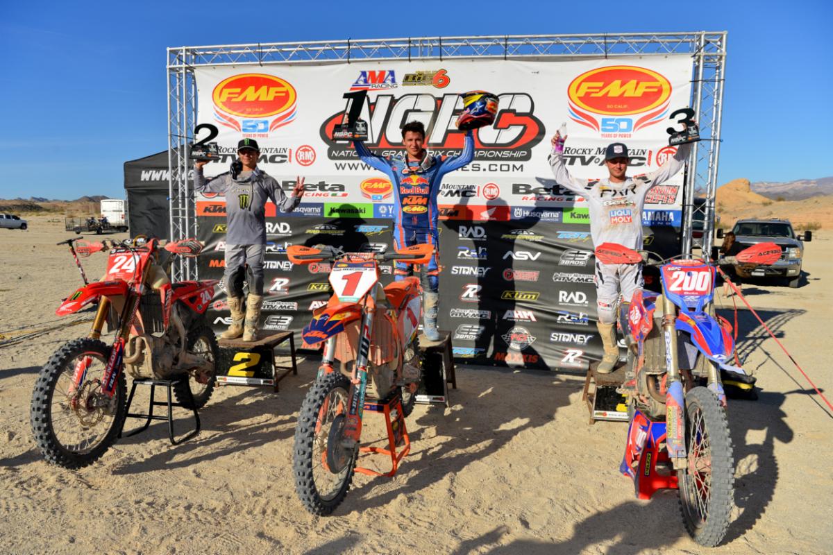 | DeMartile Finishes Second in the NGPC Championship Series For Liqui Moly Beta rider Dare DeMartile, the final round of the 2025 NGPC season at the Laughlin Grand Prix proved to be a tough battle for comfort and speed on the relentlessly fast and brutal course. DeMartile admitted he didn’t quite gel with the course’s speeds and remained cautious to avoid an accident that might jeopardize his chances of a repeat WORCS championship. Despite all that, Dare successfully navigated the demanding race to finish on the podium in third place in the Pro class. As a result, he finished runner-up in the championship points for the year. Now the focus shifts to the final WORCS race. |