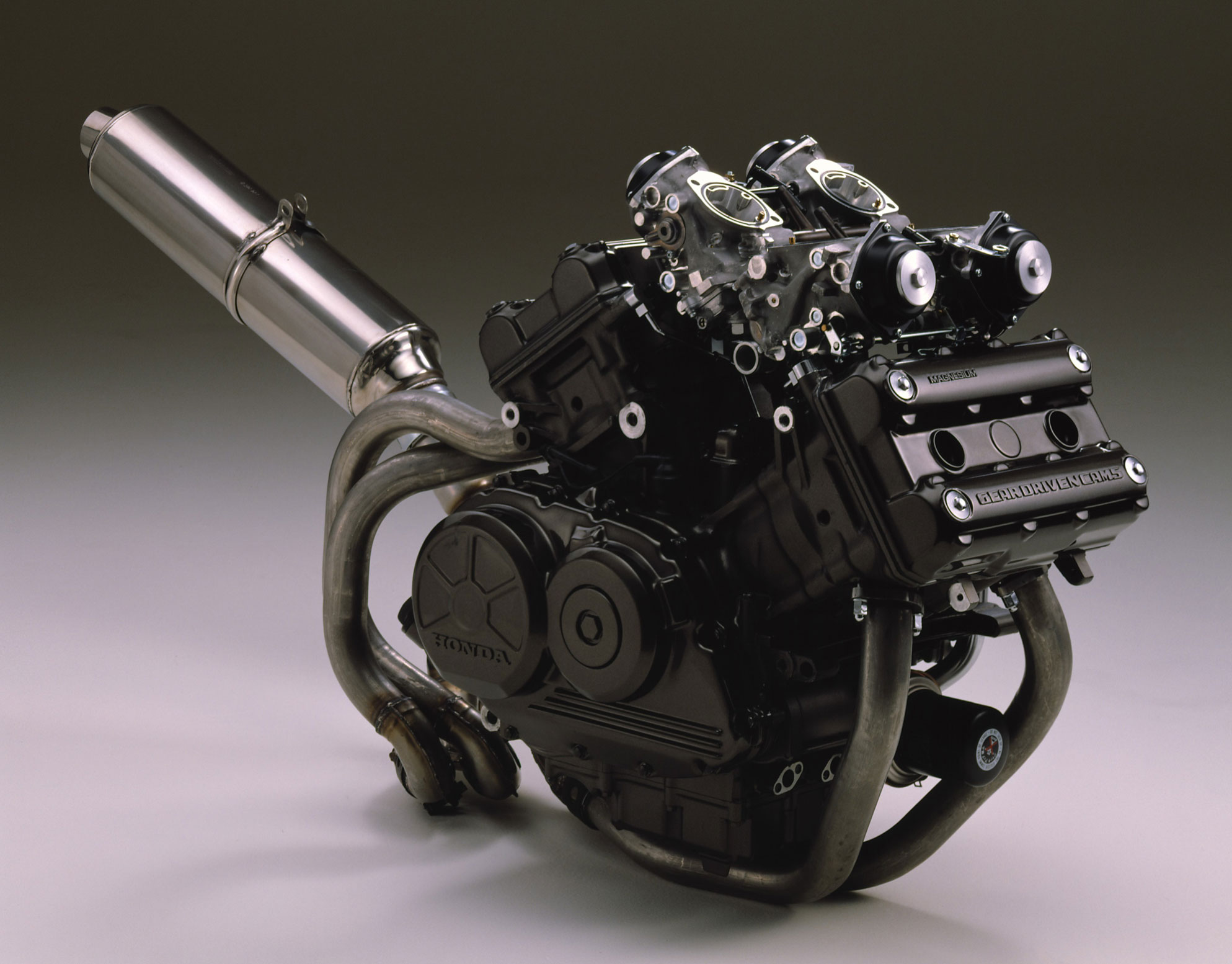 Handcrafted at the Hamamatsu factory, the RC30 was powered by a liquid-cooled 748cc 90º V4 engine that incorporated state-of-the-art racing technology at the time – a hitherto unprecedented approach. Honda development engineers used proprietary materials such as carbon fiber, Kevlar and magnesium extensively. The engine featured titanium connecting rods and an anti-rebound clutch that worked in conjunction with a close-ratio, competition-type gearbox. The wheels and brakes featured quick release anchors and the suspension was fully adjustable on both trains. The bike featured prominently an unmistakable Pro-arm single-arm swingarm, designed to facilitate quick rear-wheel changes during endurance races.