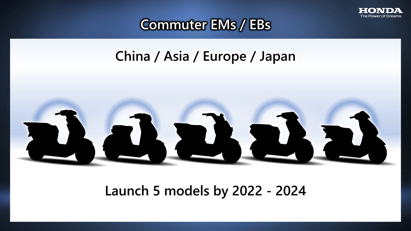 Currently, EMs and EBs account for more than 90% of industry-wide global electric motorcycle unit sales (approximately 50 million units). In China, the world’s largest electric motorcycle market, EMs/EBs are widely adopted as a convenient form of everyday mobility, and Honda has been offering such products by leveraging its local supplier infrastructure and development/manufacturing operations. With the expectation that demand for EMs/EBs will be expanding globally, Honda plans to introduce a total of five compact and affordable EM and EB models between now and 2024 in Asia, Europe and Japan, in addition to China.