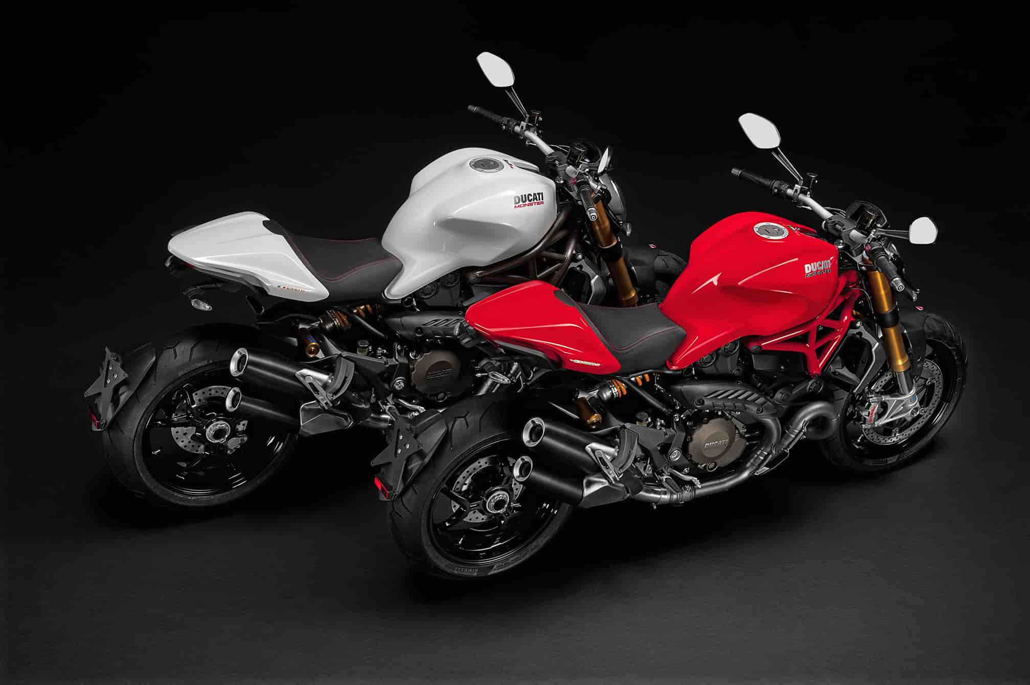 The Monster 1200 is presented in Ducati red with red frame and black wheels, the Monster 1200S S offers Ducati red with red frame and glossy black wheels in addition to the striking scheme of white with bronzecoloured frame and glossy black wheels.