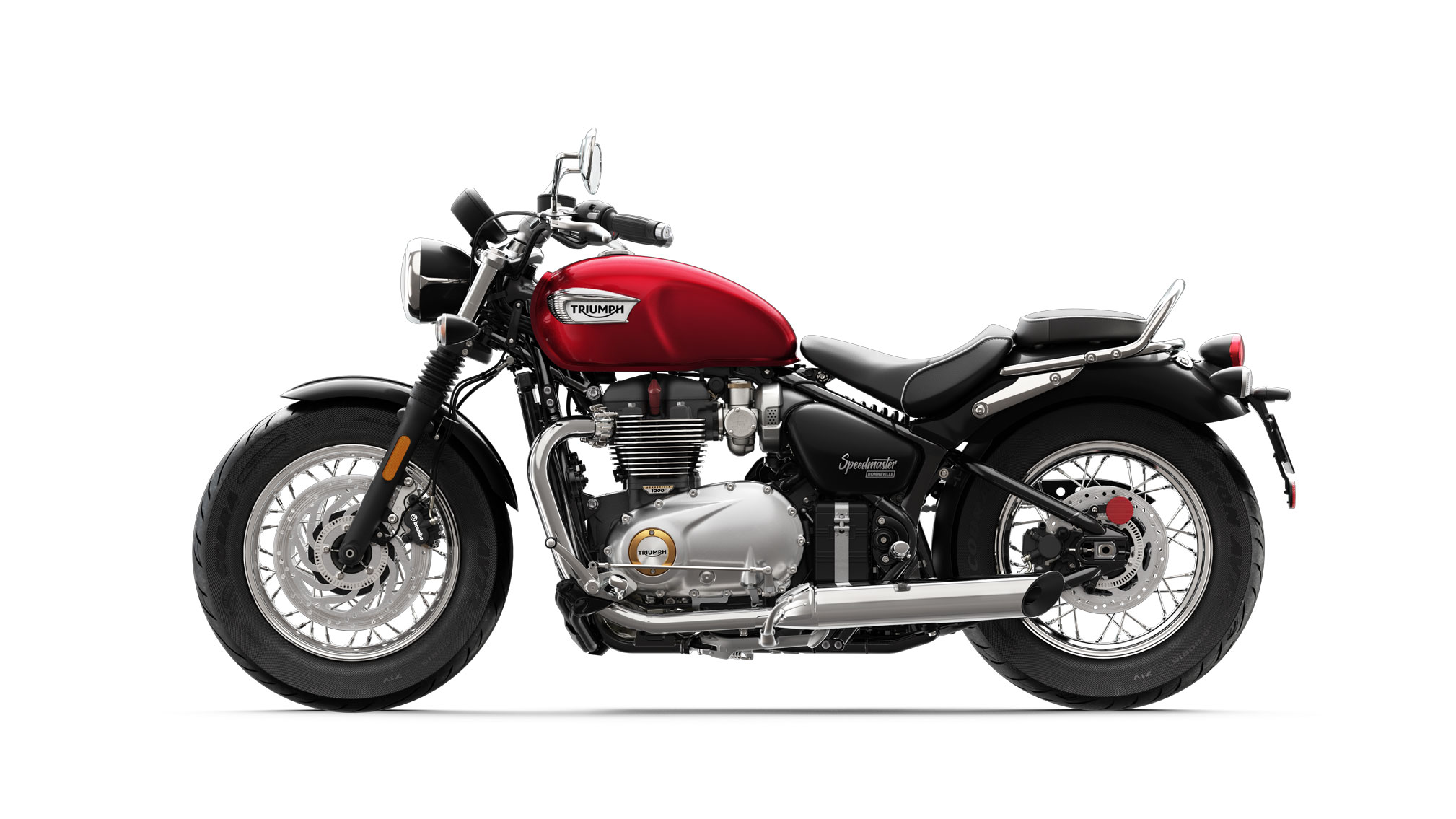 THE ALL NEW BONNEVILLE SPEEDMASTER has been designed to deliver all of the Bonneville Bobbers attitude and a host of its beautiful features. These include its elegant hard-tail look, minimal body work, classic ‘drum brake’ inspired rear wheel hub, steel mudguards with centre ridge and authentic battery box with stainless steel strap.