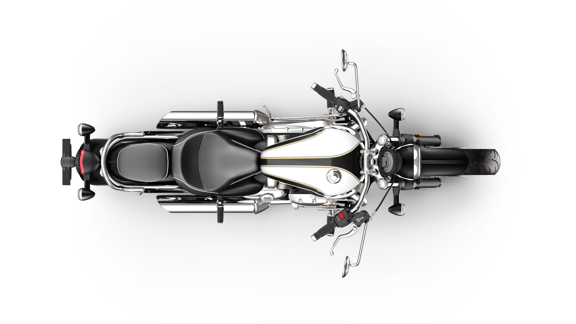 A whole host of additional elegant design touches have been considered for an authentic classic custom attitude and laid back riding style, like the classic ‘nacelle’ headlight detailing, swept back beach bars, forward pegs, fixed rear mudguard and 16” wire spoked wheels.