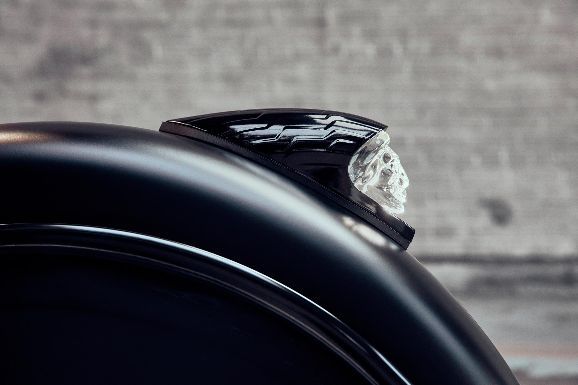 A blacked-out version of the iconic illuminated headdress, gracing the front of every fender since 1947.