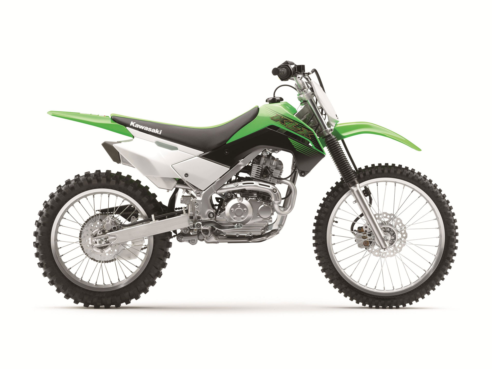 The KLX®140 motorcycle is available in three model variations, and is designed to provide a natural terrain experience with memories to last a lifetime. The powerful 144cc, four-stroke, air-cooled, single-cylinder engine features an electric starter and keyless ignition. Its broad and smooth high-revving 144cc engine utilizes a manual clutch and five-speed transmission to offer an efficient and user-friendly feel. The KLX140 uses a 17” front and 14” rear wheel, while the mid-sized KLX®140L motorcycle is equipped with a 19” front and 16” rear wheels to accommodate taller riders, providing extra ground clearance on the KLX140L. The KLX®140G comes equipped with full-size off-road wheels and tires, using a 21” front and 18” rear.