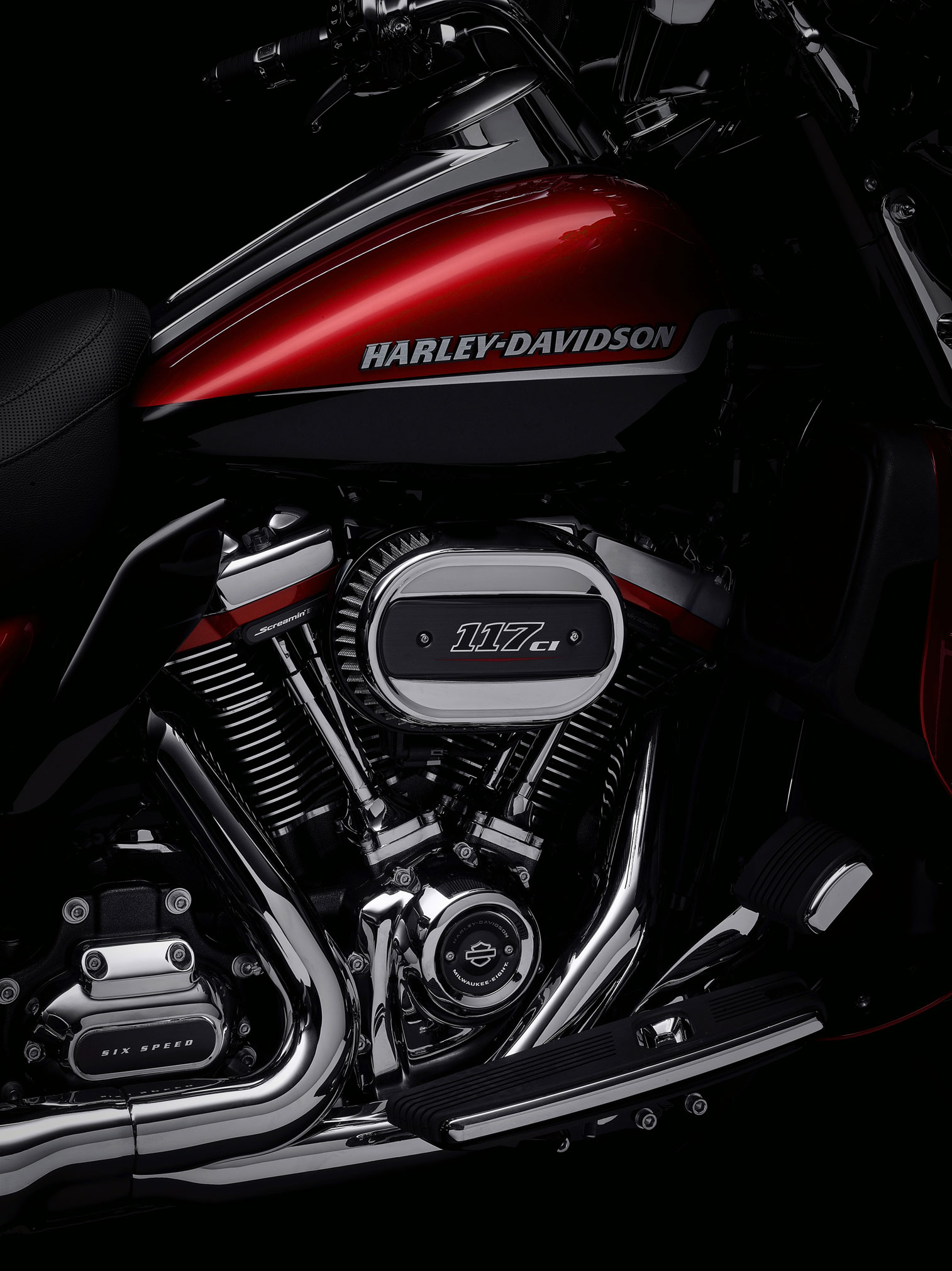 The Milwaukee-Eight 117 V-Twin engine is exclusive to CVO models and is currently the most-powerful engine offered in the Harley-Davidson model line.