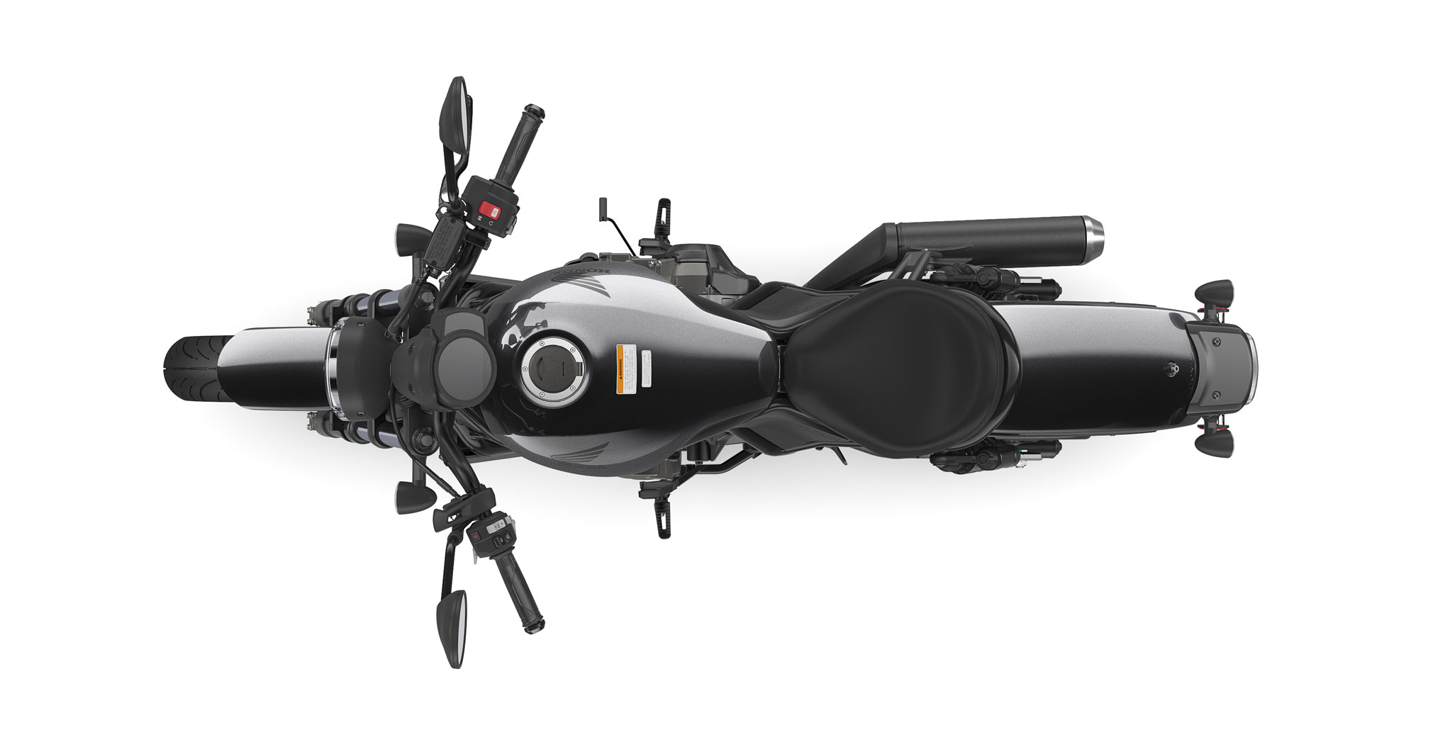 Most twins use a 180-degree crank. By phasing the Rebel 1100’s at 270 degrees, you get a unique, rumbling power delivery that’s easy to modulate, and that produces an awesome exhaust sound.