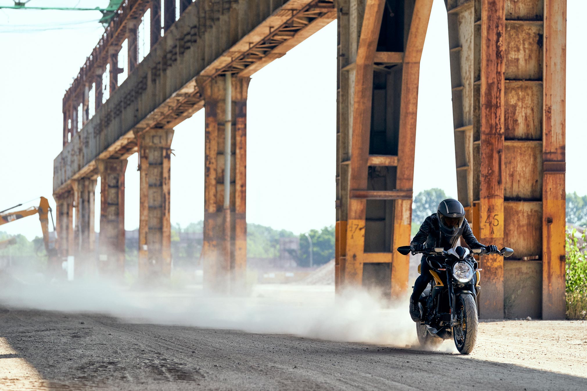 The 140 hp and 87 Nm three-cylinder engine on the Dragster 800 RR SCS is strikingly reactive thanks to the advanced electronic management of the MVICS system. Combined with leading-edge Smart Clutch System it delivers its full potential, allowing for clutch-free stopping and re-launching, full throttle.