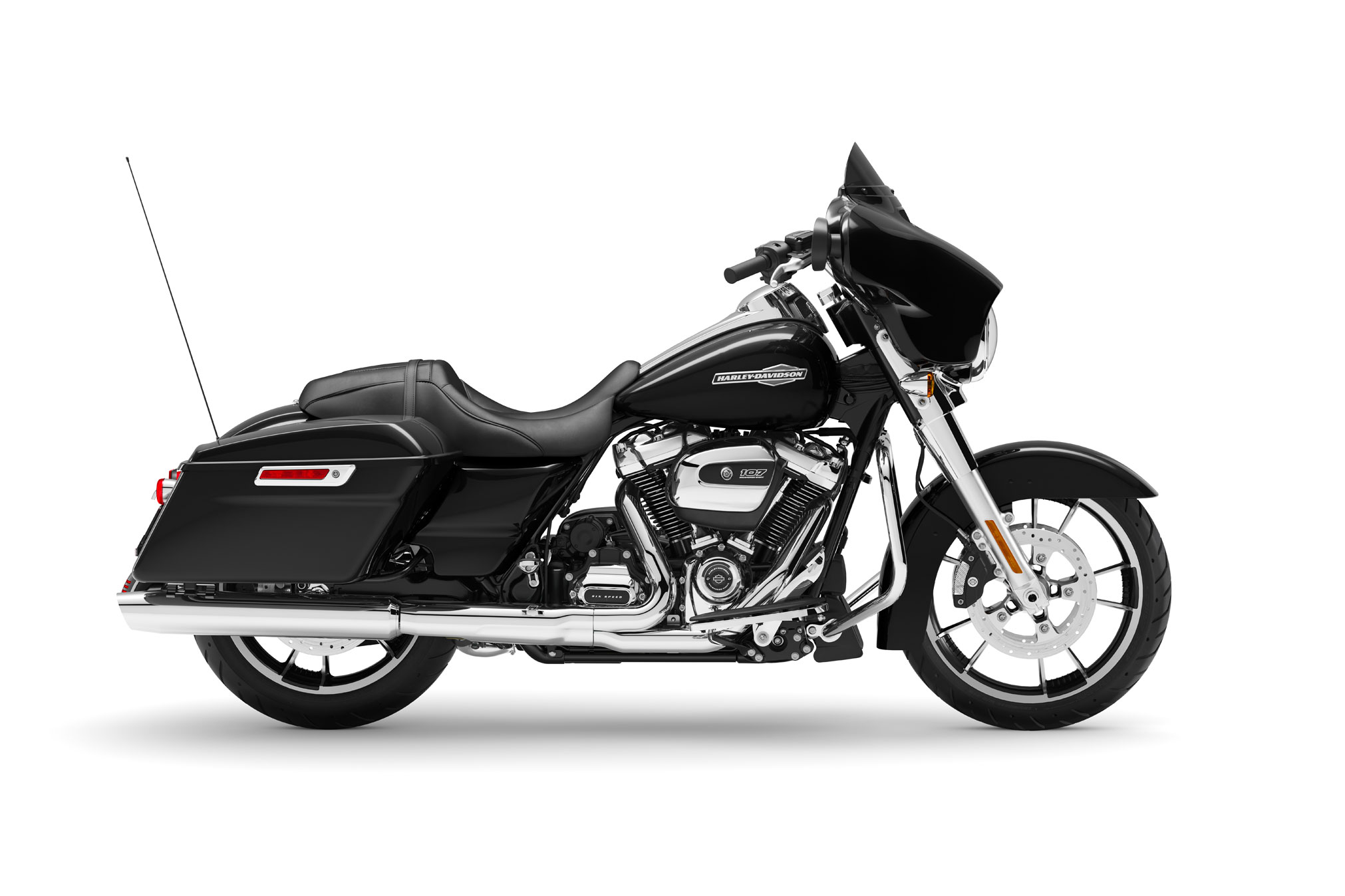 - Milwaukee-Eight® 107 V-Twin engine and batwing fairing
