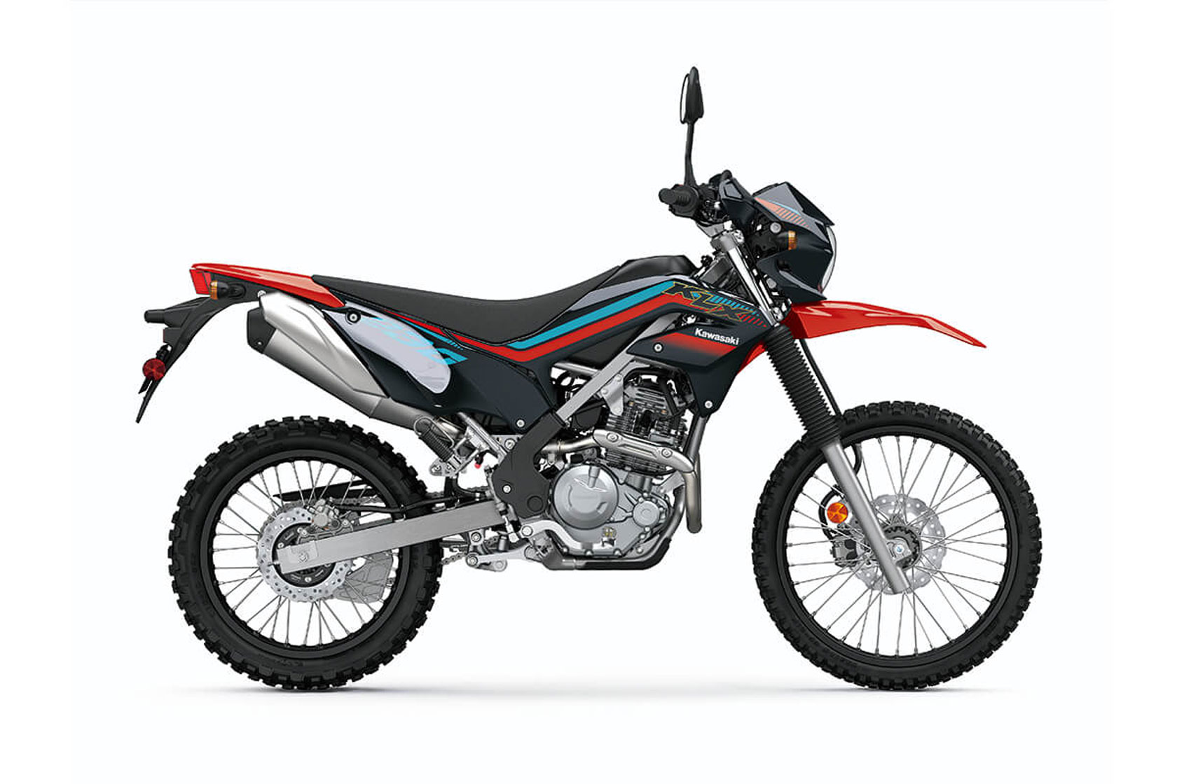 The KLX®230 dual-sport lineup is powered by a 233cc fuel-injected, air-cooled single cylinder engine, tuned for low- to mid-range power.