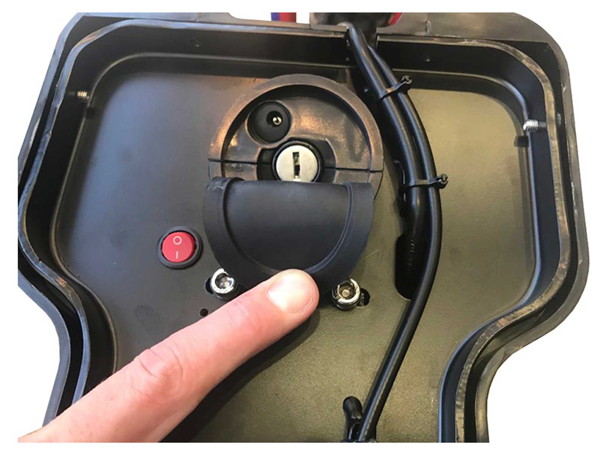 Large capacity batteries provide up to 1.5 hours of ride time depending on speed and load. Batteries are locked for safety and can be easily changed with the key. There is a battery life indicator located on the twist throttle, the seat height is fully adjustable and the drive chain is fully enclosed for safety.
