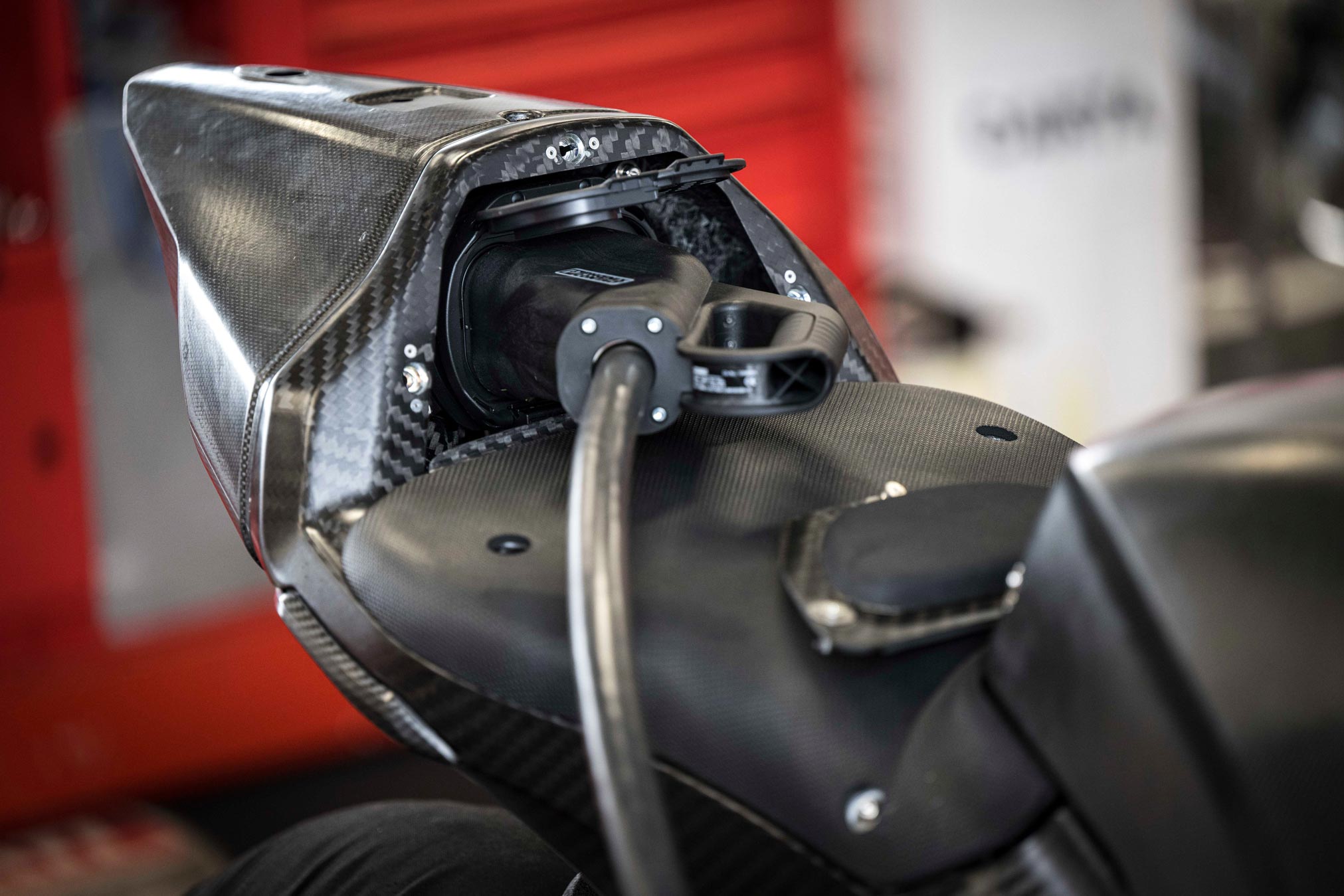 The possibility of applying the development and test method already used in MotoGP, with a precise sequence of tests to be carried out on the various components to maximize the performance of each day on the track, was achieved also thanks to the efficiency of the cooling system, which has reduced charging times to a minimum, thus allowing for a truly significant continuity of use for an electric motorcycle. The development work involved a specific learning and training course for all the personnel involved, exploiting the knowledge shared within the Volkswagen Group, to ensure the total safety of the rider and technicians.