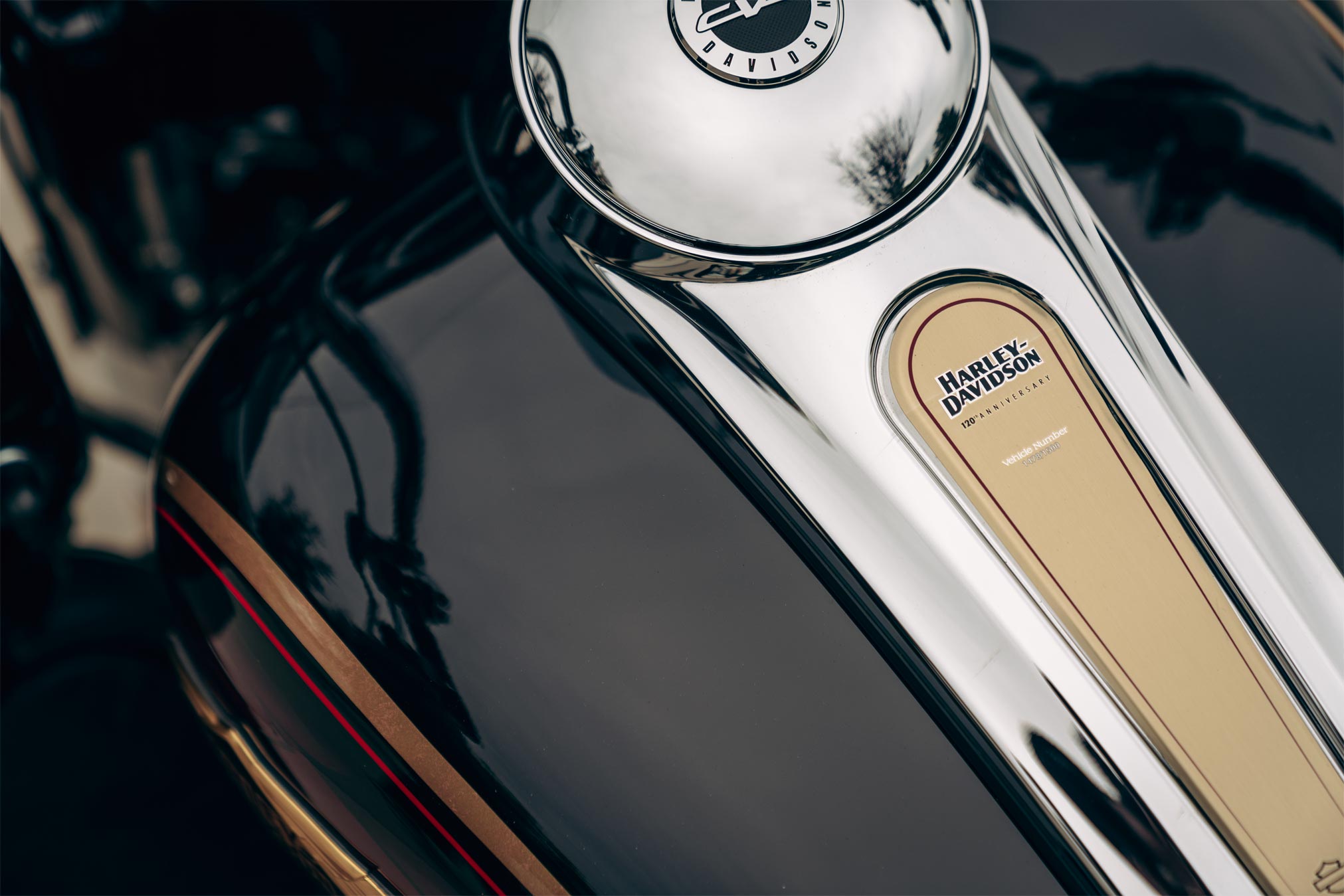 To commemorate the 120th anniversary, each motorcycle features a laser etched serialization on console insert.