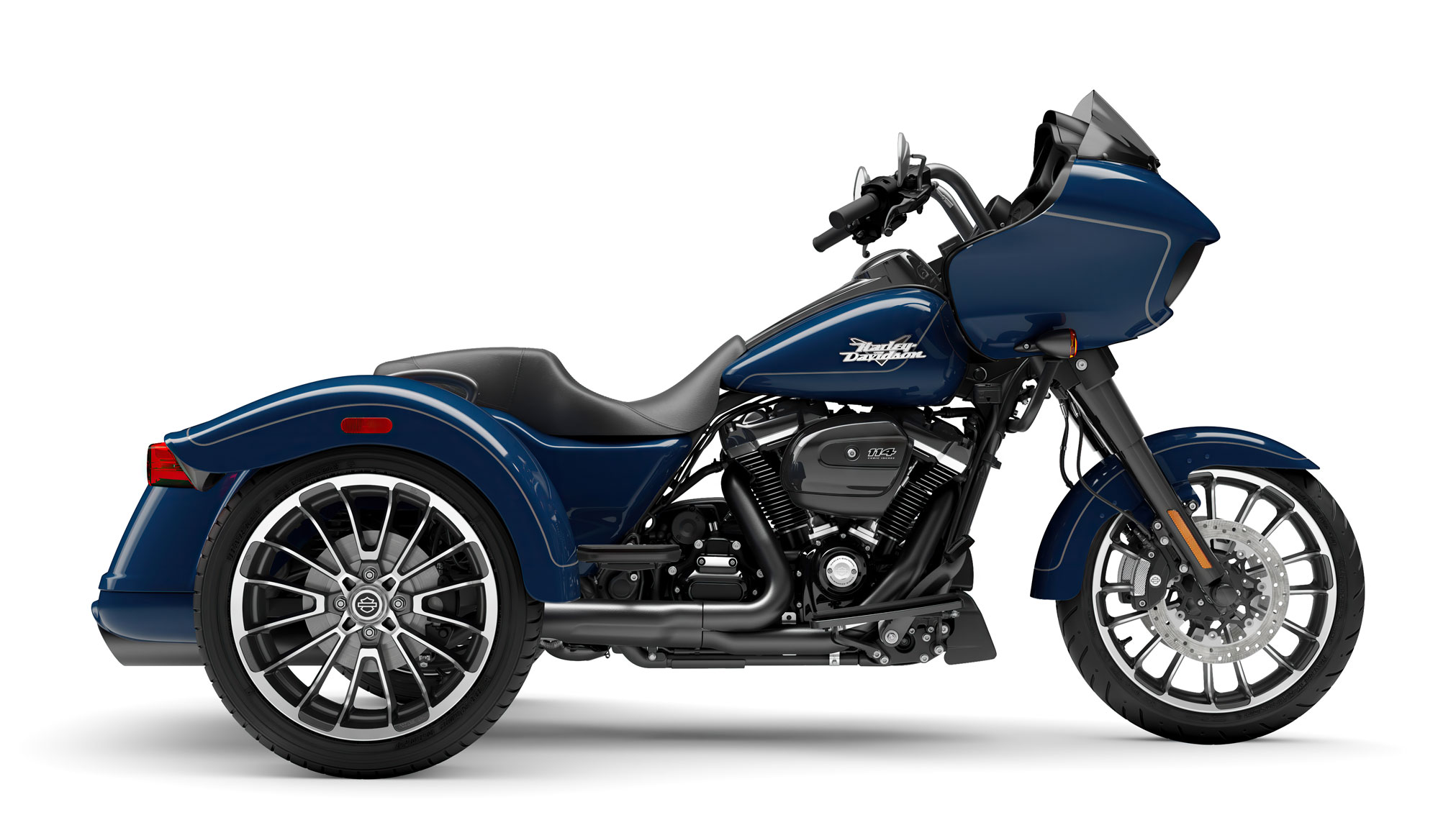 The new Road Glide 3 model combines the advantages of three wheels and a load of hot rod attitude with the comfort, convenience and style of the frame-mounted Road Glide fairing. The rider will enjoy wind-and-weather protection for the long haul plus BOOM! Box GTS infotainment, with Milwaukee-Eight 114 on-demand performance available with a twist of the throttle. It’s a new reason to never stop riding.