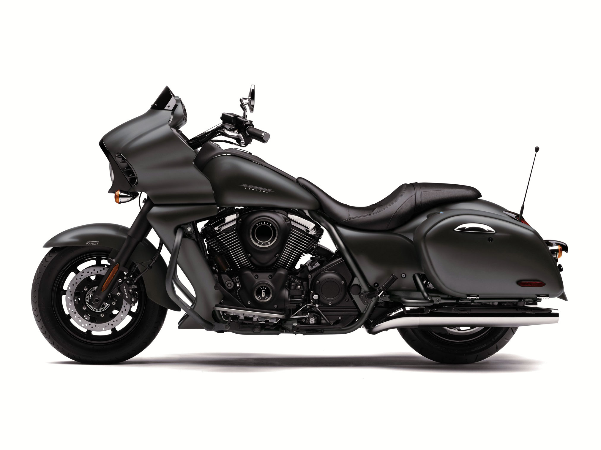 It may look like a custom V-twin bagger, but the Vulcan 1700 Vaquero cruiser is in a class of its own. A roaring 1,700cc engine featuring advanced Kawasaki technology offers a smooth, reassuring ride. The blacked-out engine, distinct styling and select chrome accents create a unique and bold appearance.