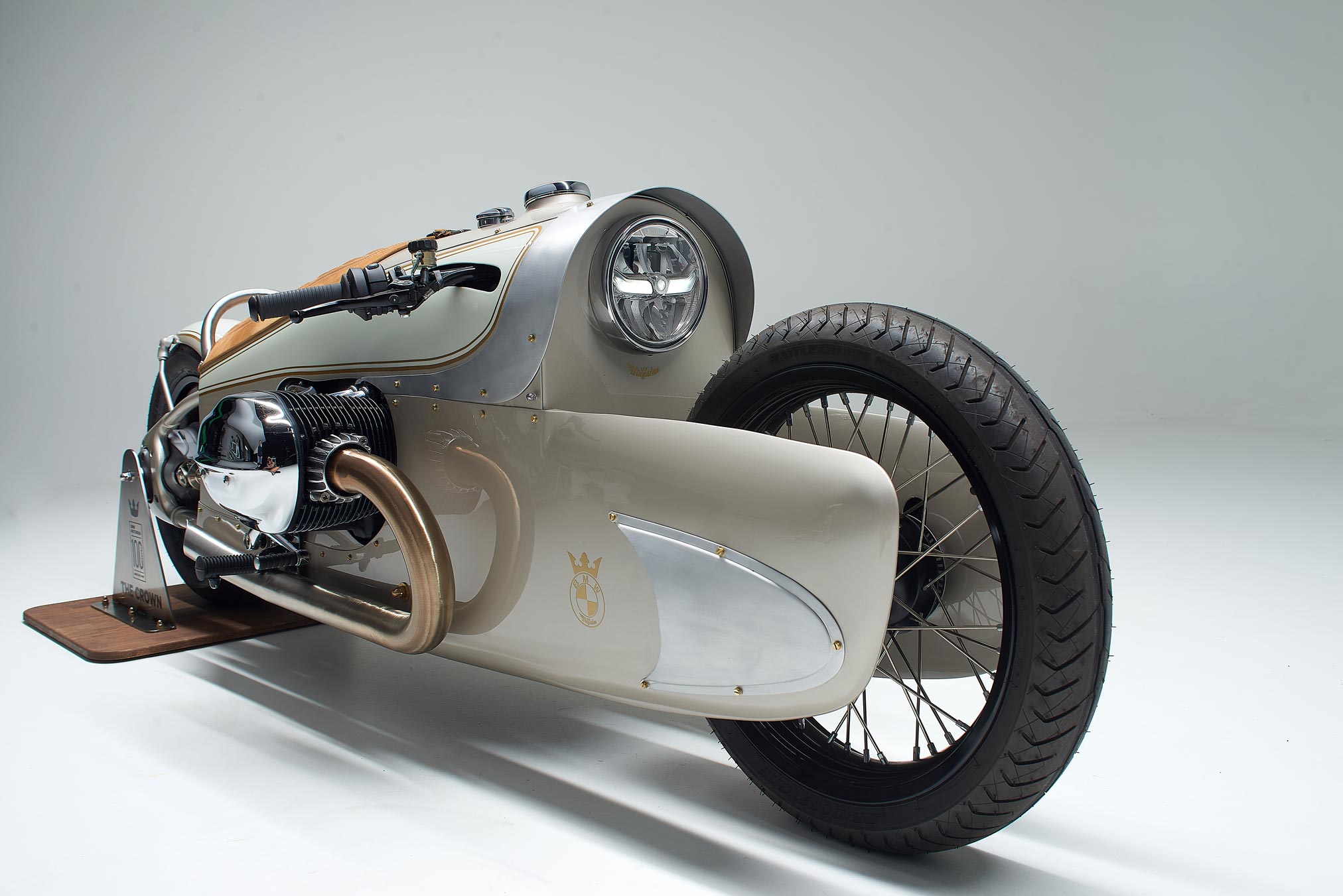 Numerous standard components such as the headlight, instrument, switch units and footrest system have been integrated perfectly into the spectacular concept of the R 18 The Crown. The clutch and handbrake fittings from Magura, the rear mudguard and brackets from Wunderkind and the saddle made from 2 mm thick aluminium sheet metal and covered with genuine leather are all harmonious additions.