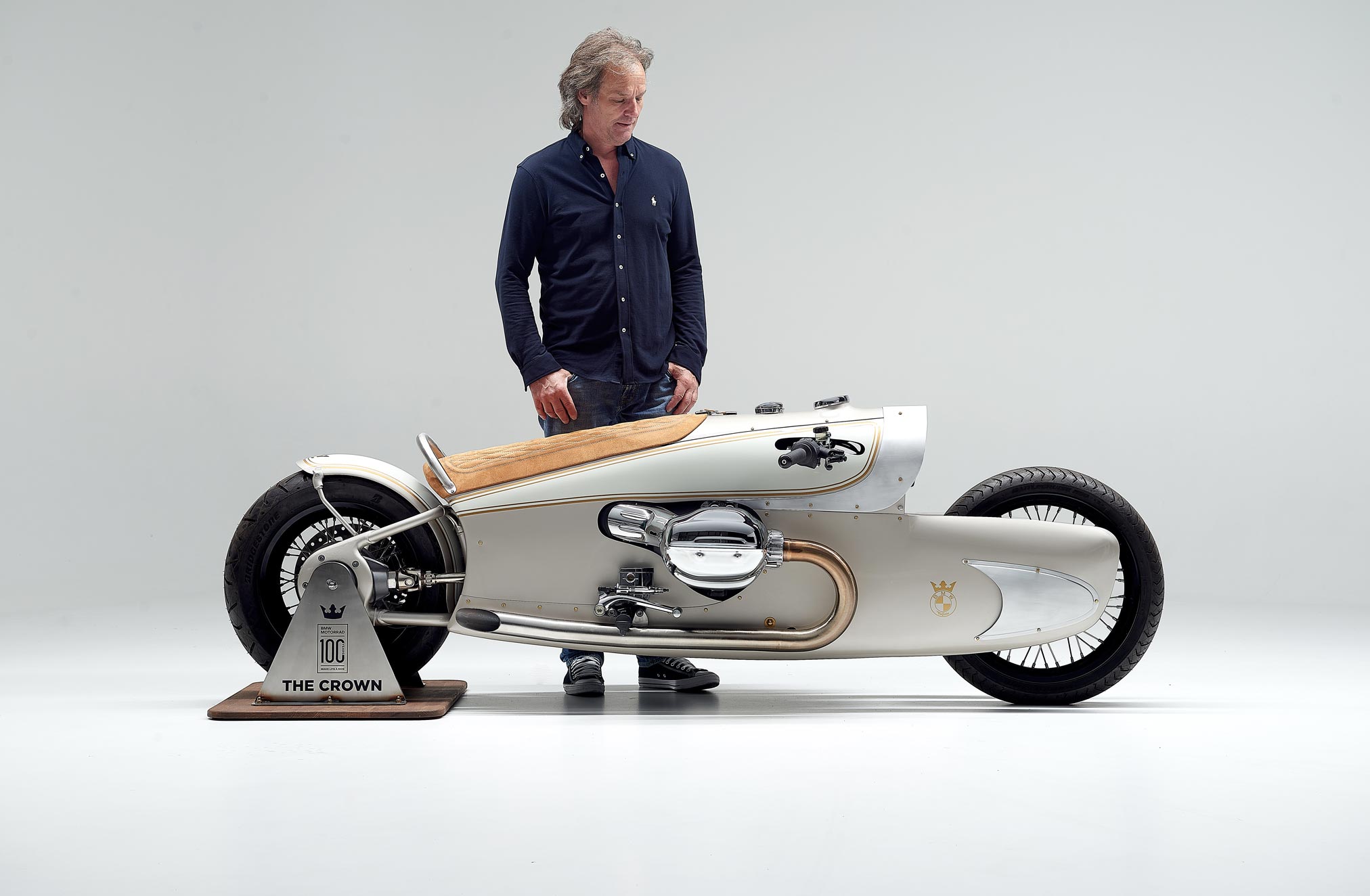 To mark 100 years of BMW Motorrad, he has now created the R 18 The Crown, a big boxer motorcycles that has it all. “I started with a new BMW R18 which I then stripped down. As always, I worked with hard foam and cardboard to create the shape, the lines and the design. The aim was for it to look powerful, elegant and fast combined with an innovative look,” is how Oehlerking describes his design approach.