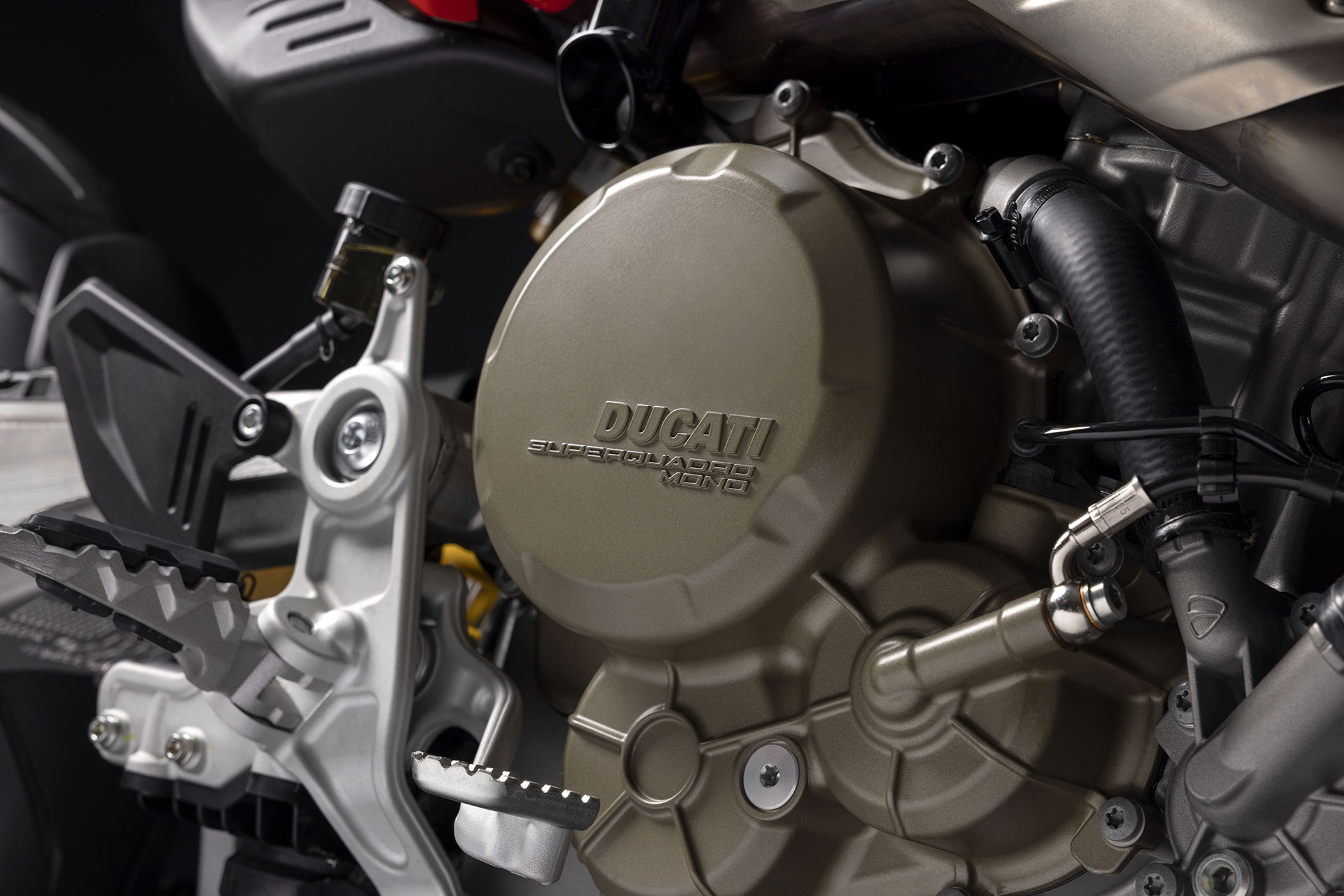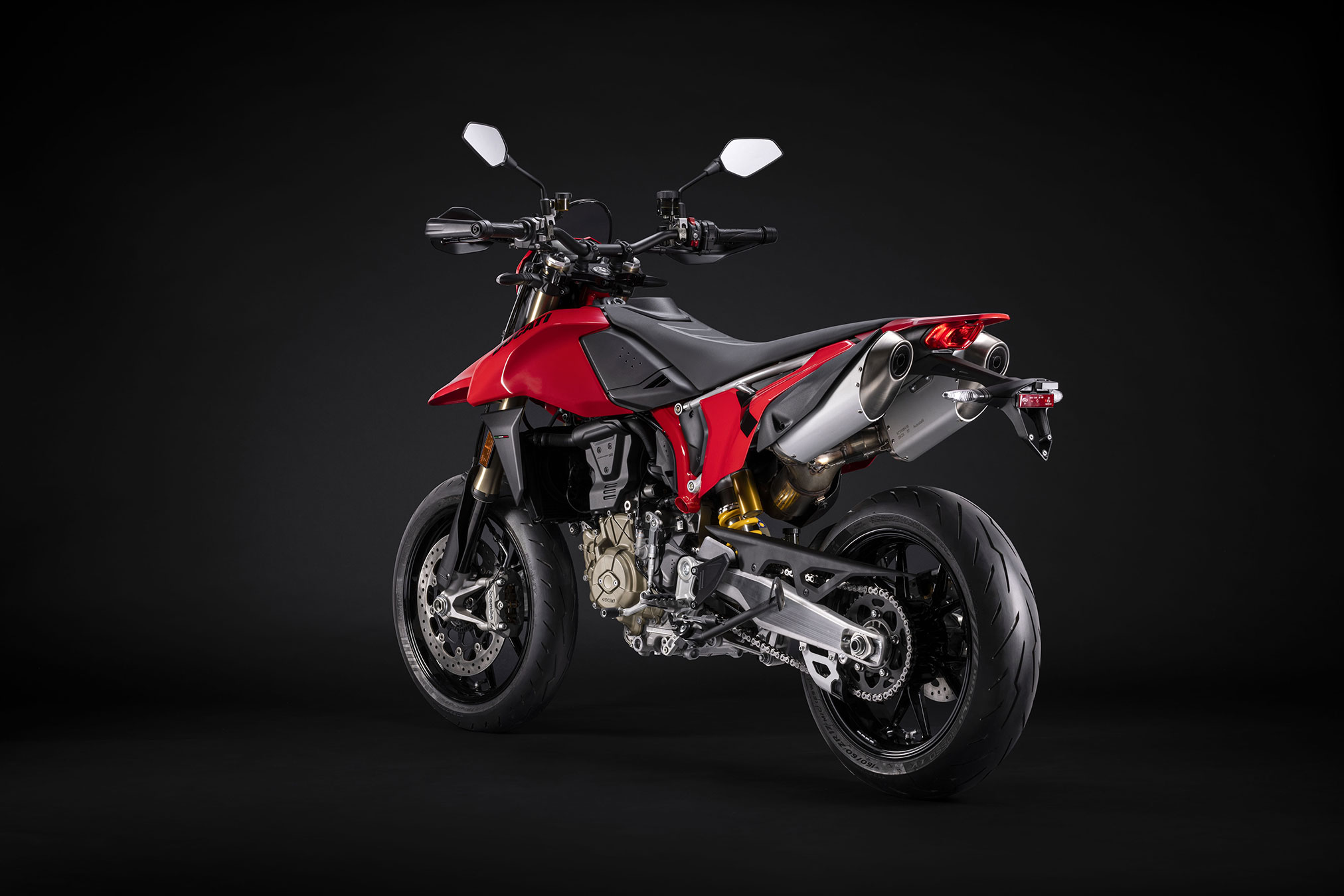 Added to all this is a design that enhances the presence of the new Superquadro Mono engine, combining the distinctive traits of racing Supermotards such as simplicity, aggressiveness, and visual lightness with the cleanliness and sophistication of the finishing details to which Ducatisti are now accustomed.