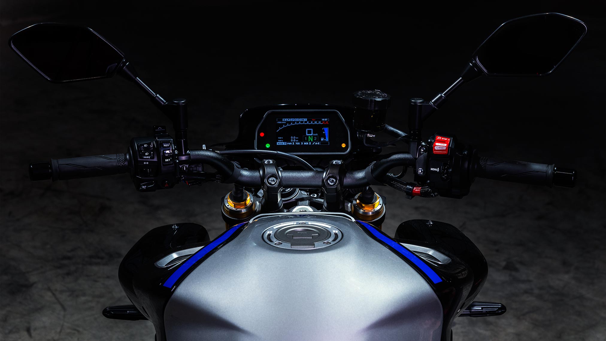 The MT-10 SP comes equipped with a premium full-color 4.2-inch TFT display, featuring a clear, easy to read screen and intuitive function navigation controlled by a scrolling menu switch on the right handlebar and a quick-select mode switch on the left handlebar.
