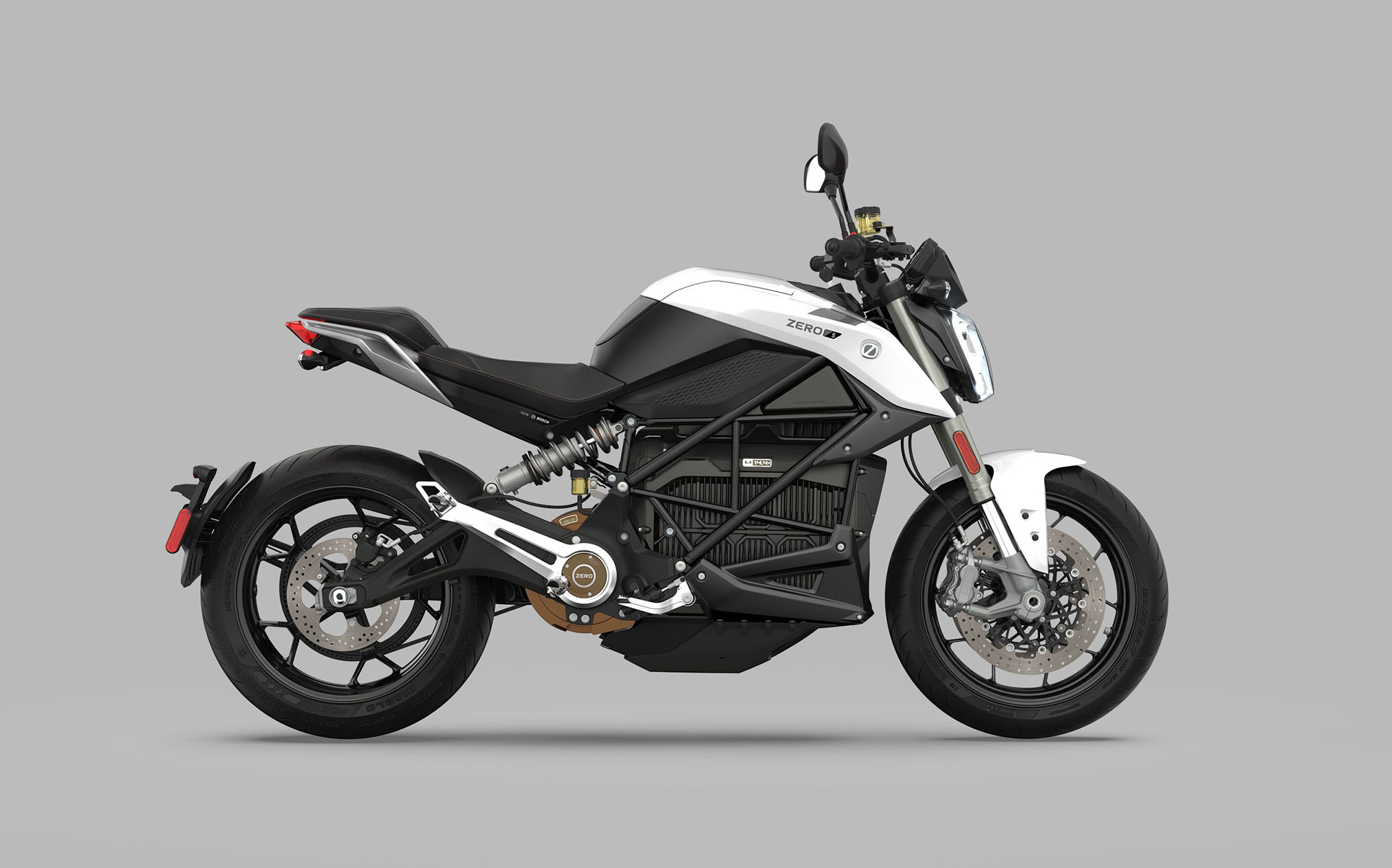 The Zero S sits atop a pair of premium lightweight and strong cast 17” wheels wrapped in grippy and versatile Pirelli Diablo Rosso III tires. The reduced rotational mass of the wheels is fully taken advantage of thanks to the supple yet durable rubber from the race-inspired, three-season tires.