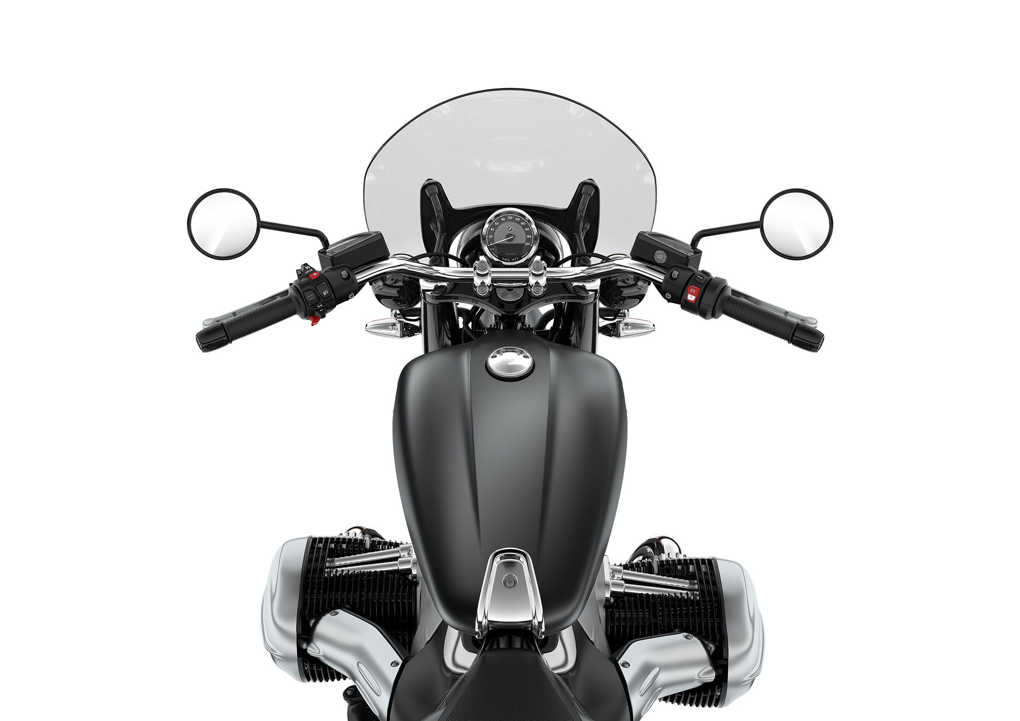 1,802 cc air/oil-cooled, 2-cylinder boxer motor, 6-speed helical-toothed gearbox, anti-hopping clutch, chrome plated header, stainless steel round exhaust system, open drive shaft, cast aluminum wheels, twin-disk front brakes, rear shock with preload adjustment, BMW Motorrad integral ABS, ASC Automatic Stability Control, Dynamic Brake Control, Dynamic Engine Brake Control, Electronic Immobilizer, Riding Modes, Keyless Ride, full LED lighting, comfort turn signals, 12v socket, USB-C charge socket, tachometer, on-board computer, adjustable handbrake and clutch levers, Ultimate Care Break-In Service.