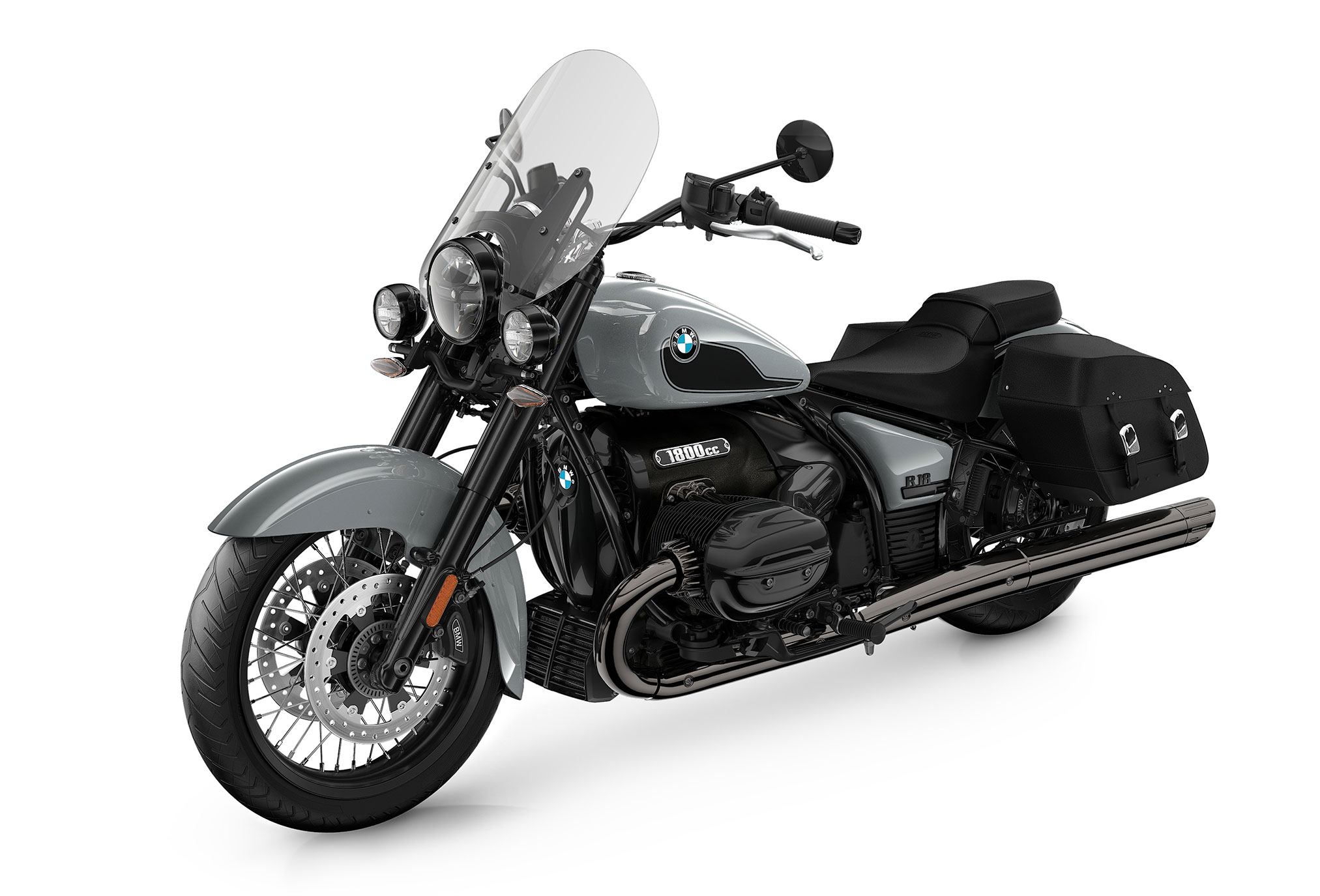 - Mineral Gray Metallic Matte – Optional finish with Silver powertrain, straight chrome exhaust, fork tube covers, spoked 19-inch / 16-inch wheels and R 18 B front fender.