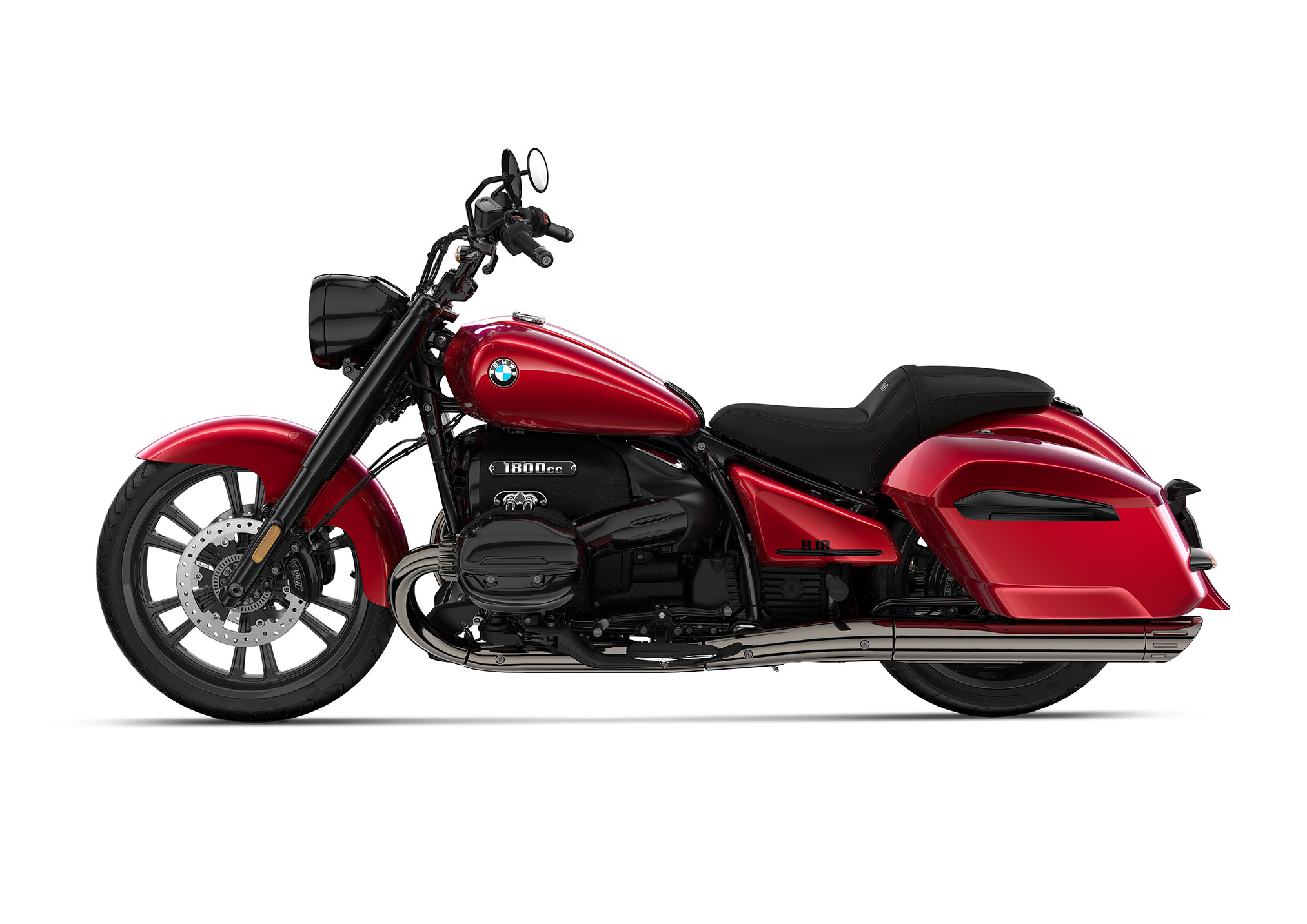 The BMW R 18 Roctane is now available in Two-Tone Dragonfire Red Metallic. Also new are optional body colored Filler Panels, which visually make the gap between the side cases and the rear fender disappear, and the Dark Chrome finish for the pushrod tubes, airbox cover and headlight inner ring.