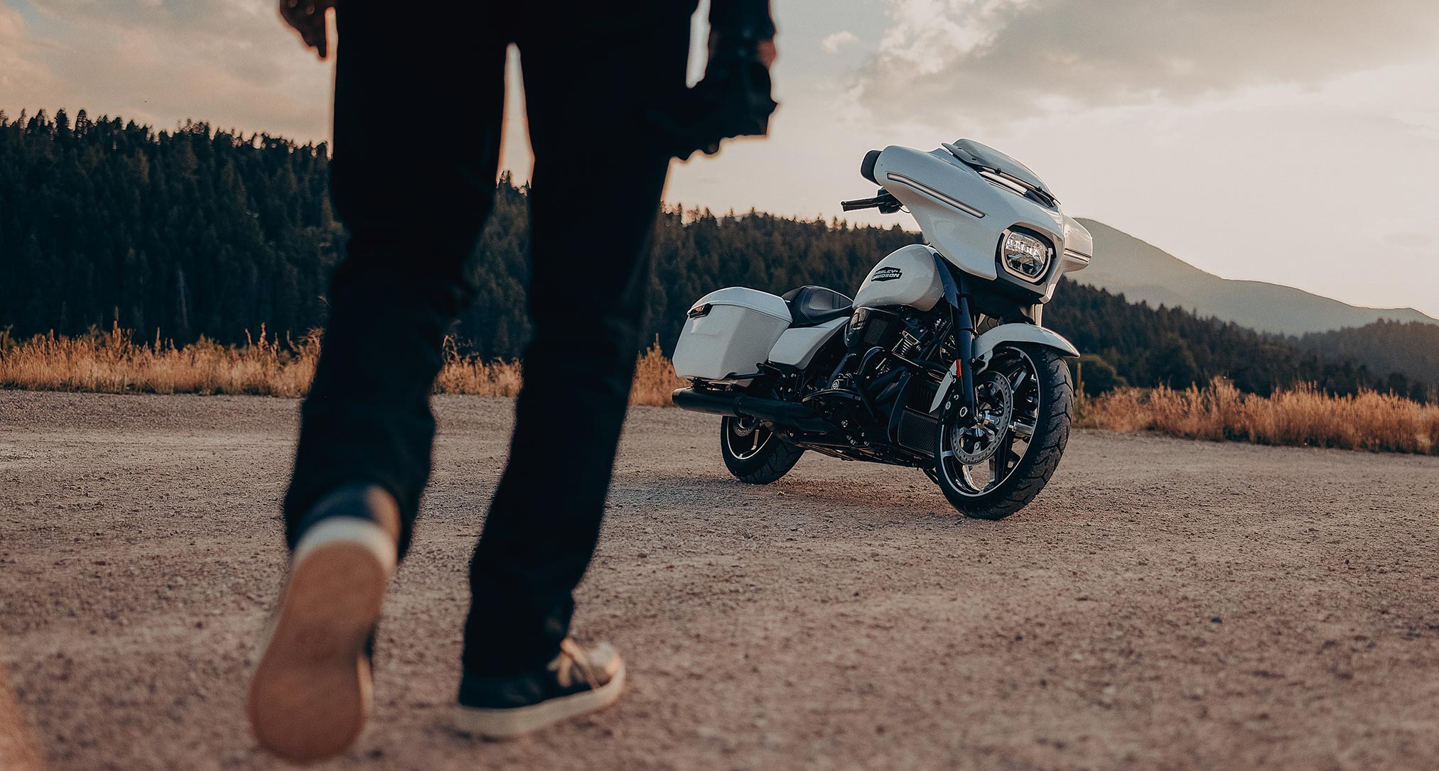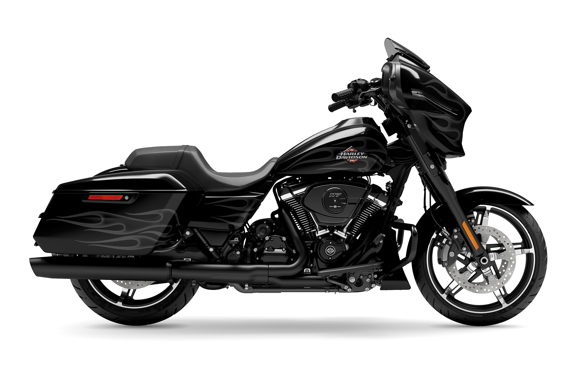 Every surface of the Street Glide has been reimagined and refined, creating a seamless visual flow from the tip of the front fender to the tail of the saddlebags.