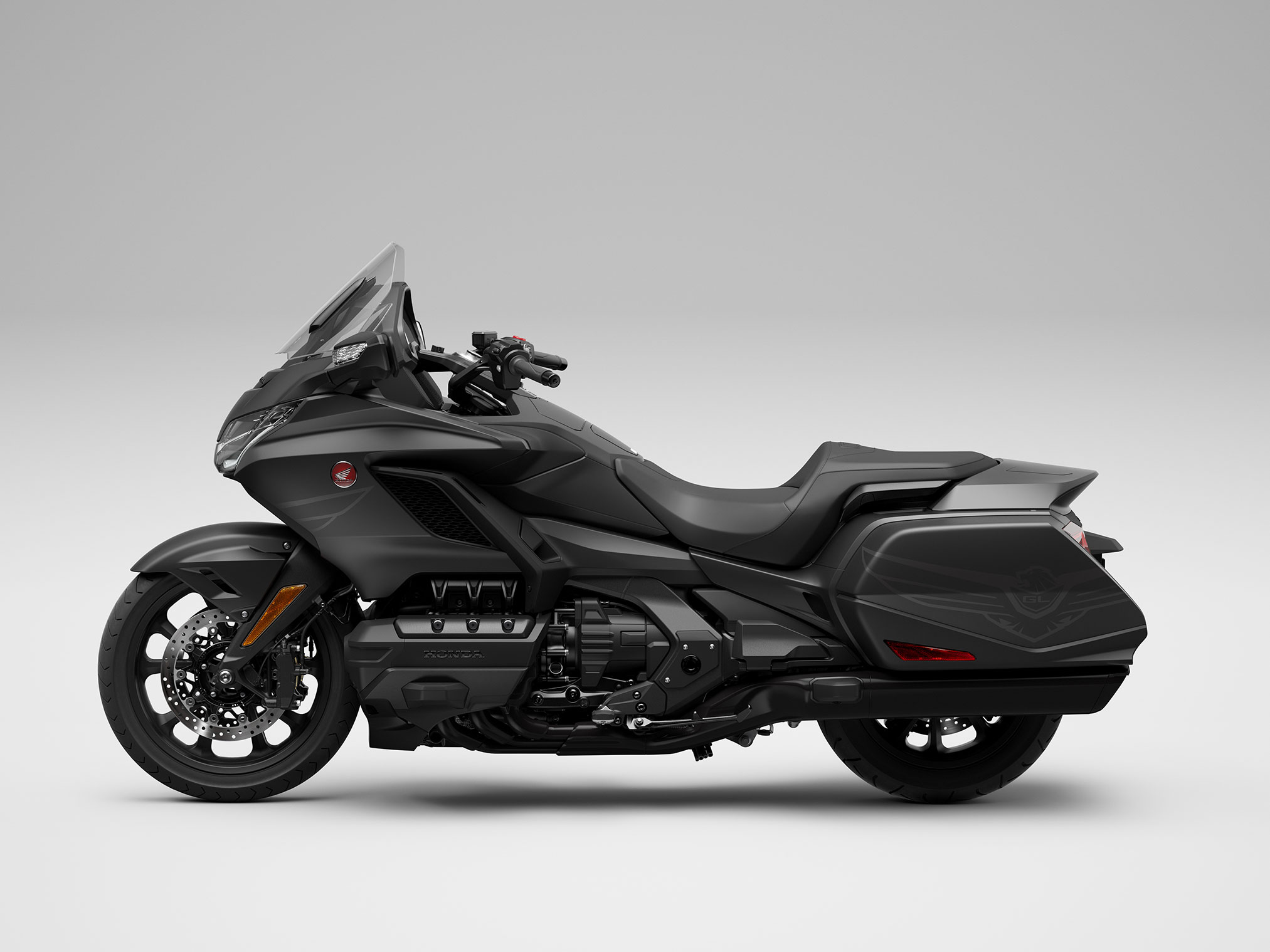 For model-year 2025, all Gold Wing versions in Eternal Gold, Bourdeaux Red Metallic and Matte Black Metallic (not Light Silver Metallic) come with two free commemorative gifts: a coffee-table book and a tabletop 3D 1:12 scale model. The model features a 1975 Gold Wing on one side and a 2025 Gold Wing on the other side.