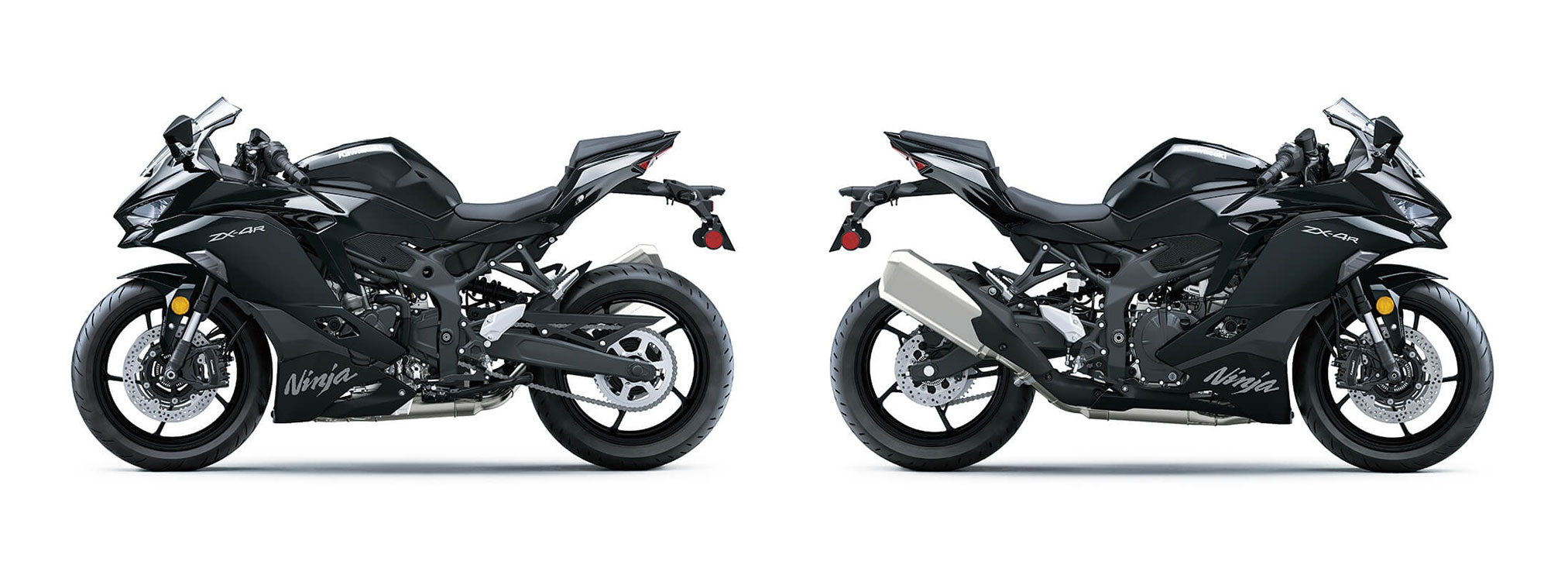 The Ninja ZX-4R is the ultimate lightweight superbike experience, packing a high revving 400cc inline four cylinder engine into a compact trellis frame, while the Ninja ZX-4RR has additional circuit potential with upgraded suspension and dual-direction Kawasaki Quick Shifter. Light, easy to ride and highly capable, the screaming inline cylinder engine provides a unique superbike engine experience on every ride that only Kawasaki can offer.