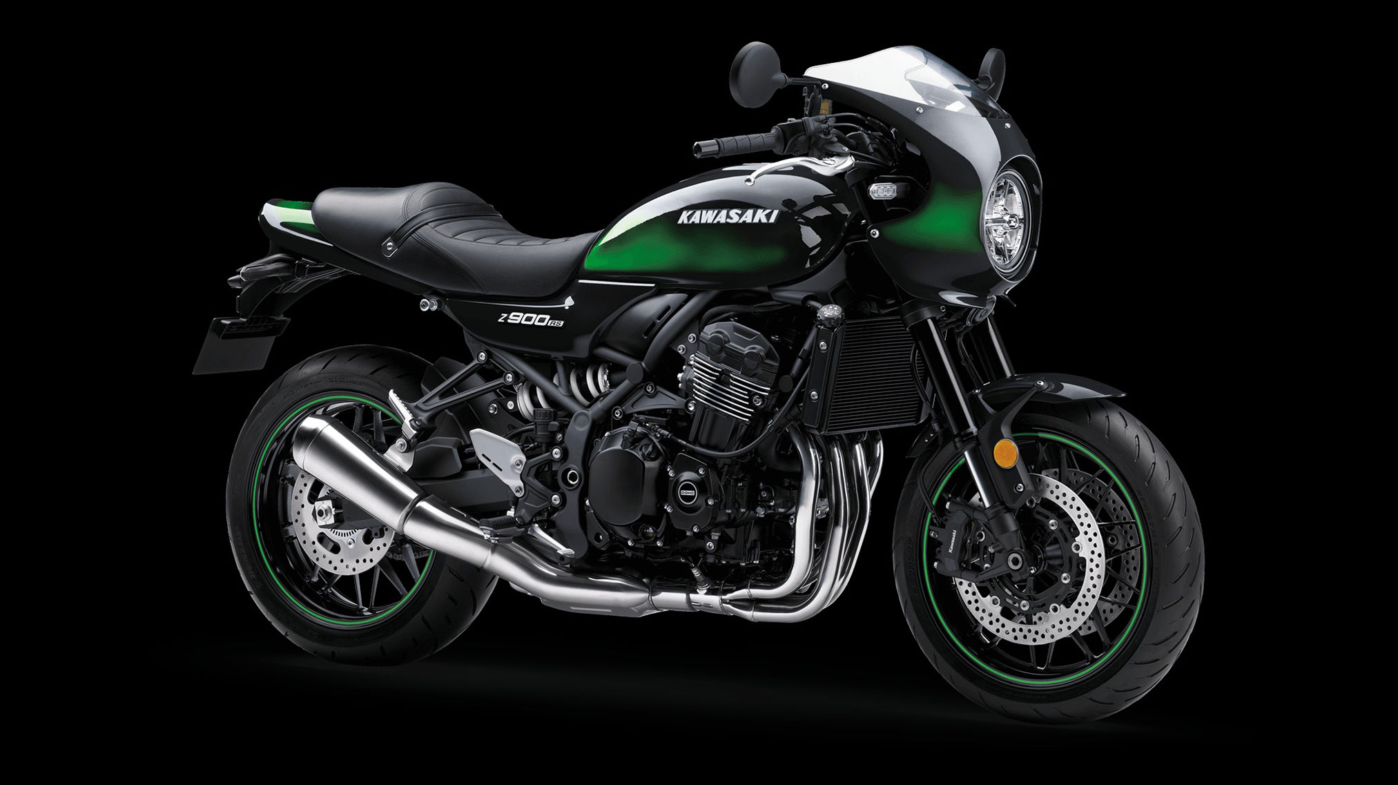 The Z900RS CAFE ABS adds café-racer styling, including a front cowl and a café-inspired seat along with a drop handlebar and is available in an Ebony colorway.