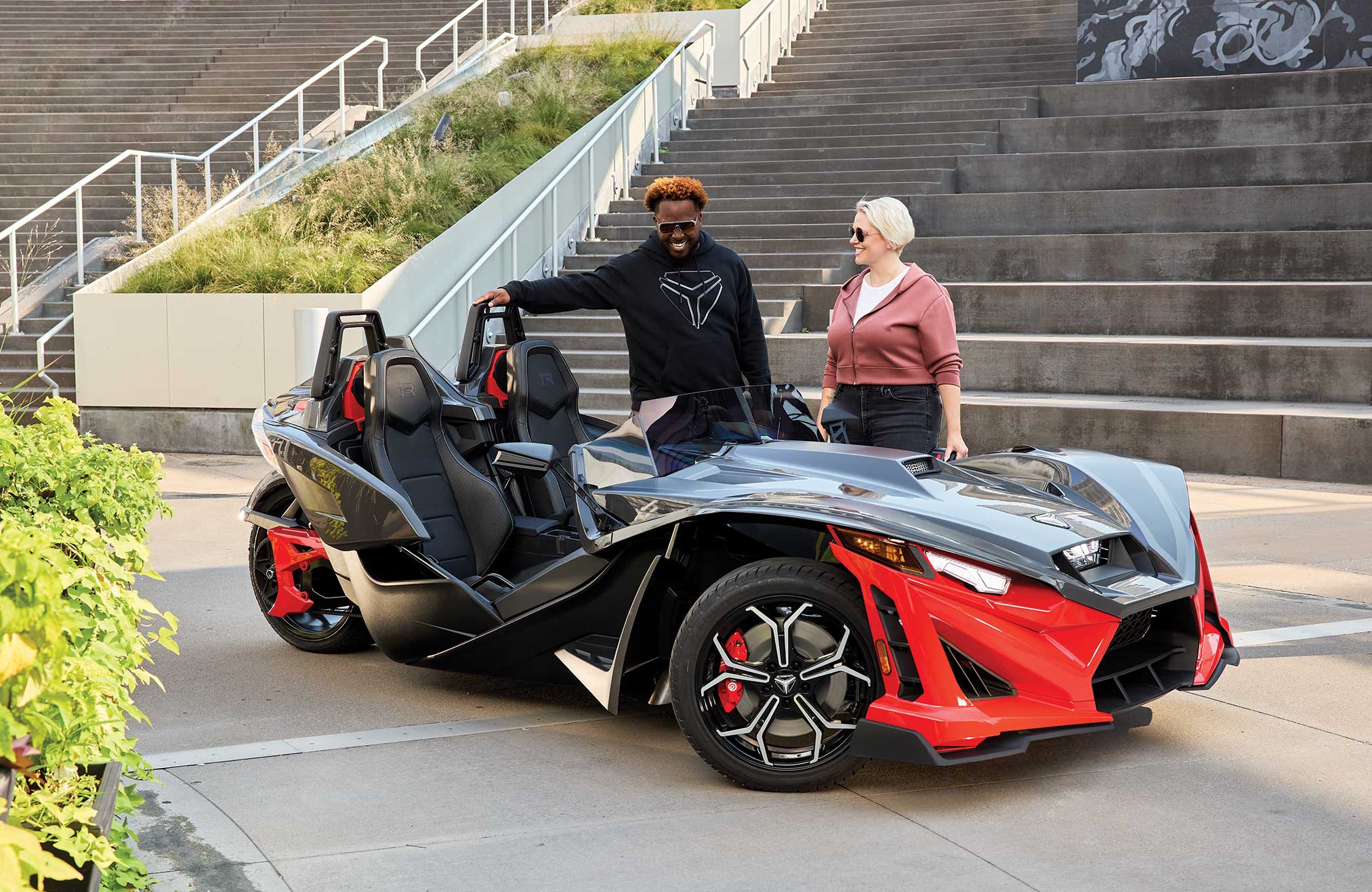 Personalization is half the fun of owning a Slingshot and key to the Slingshot ownership experience. To support a wide range of driver needs and style preferences, Polaris Slingshot offers a number of factory-engineered accessories – allowing owners to seamlessly upgrade their audio experience, customize their style, or enhance their comfort.