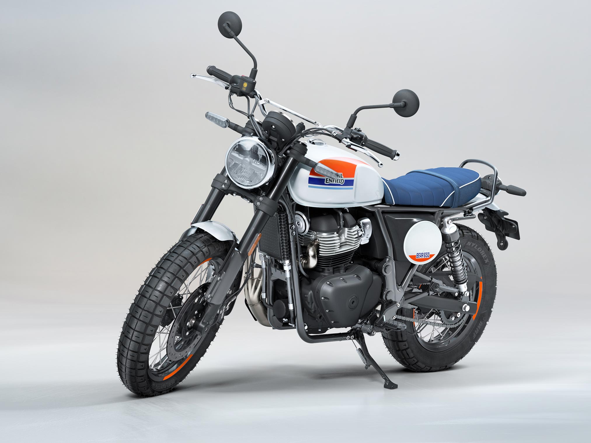 gives the motorcycle a heritage scrambler look; an ode to the scrambler motorcycles of yore.