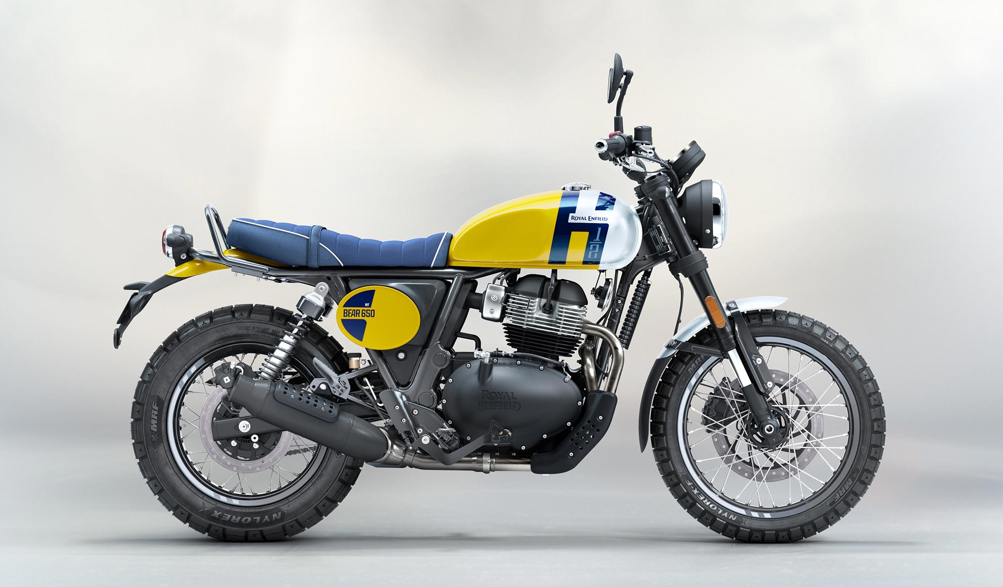 The all-new Bear 650, a road scrambler with a 60’s soul. Based on the Royal Enfield INT650 platform and powered by the celebrated 650cc parallel twin engine, the Bear 650 combines authentic heritage scrambler styling and raw, uncompromising spirit.