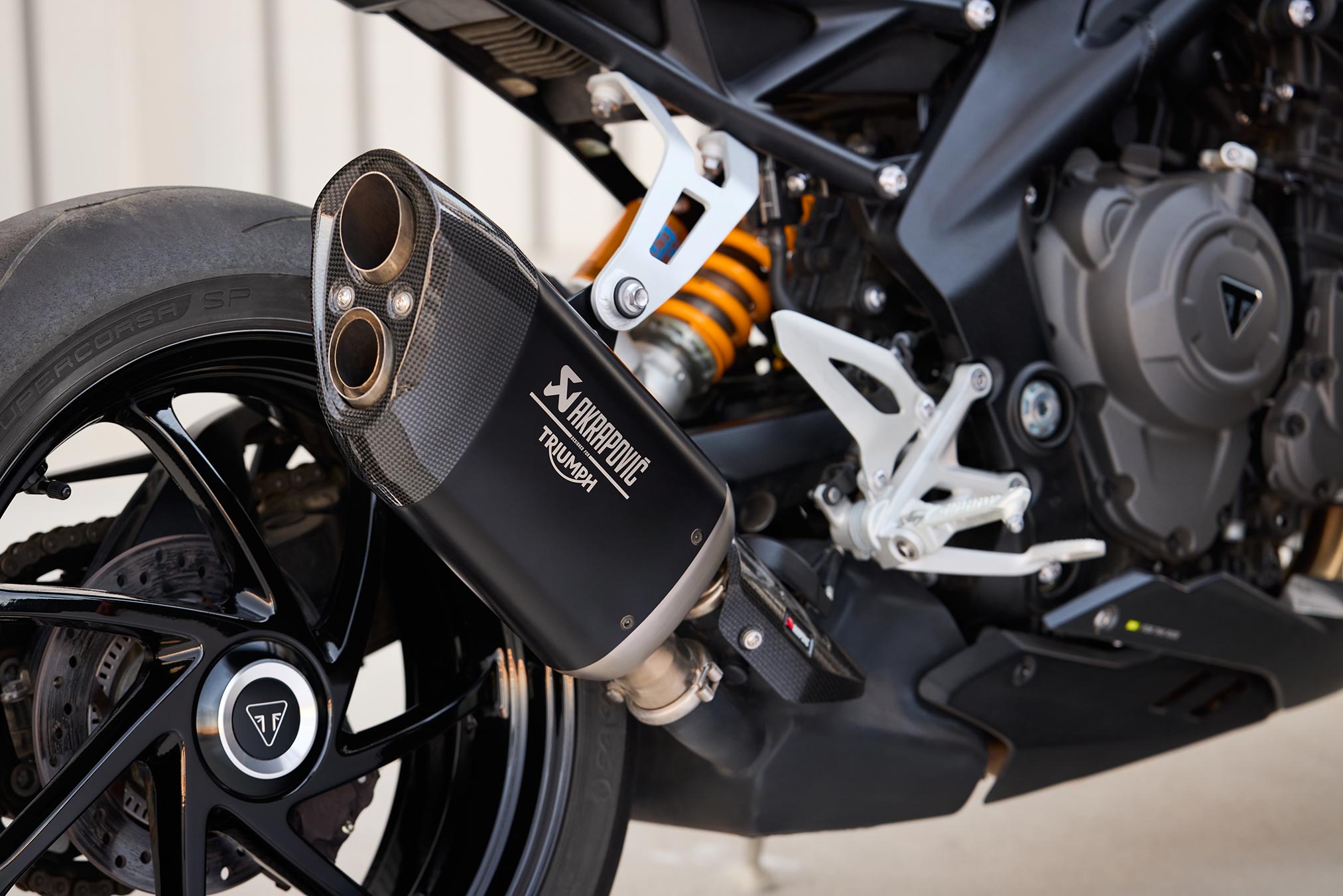| Exhaust | Stainless steel 3-into-1 header system with underslung primary silencer and side-mounted titanium Akrapovič secondary silencer |