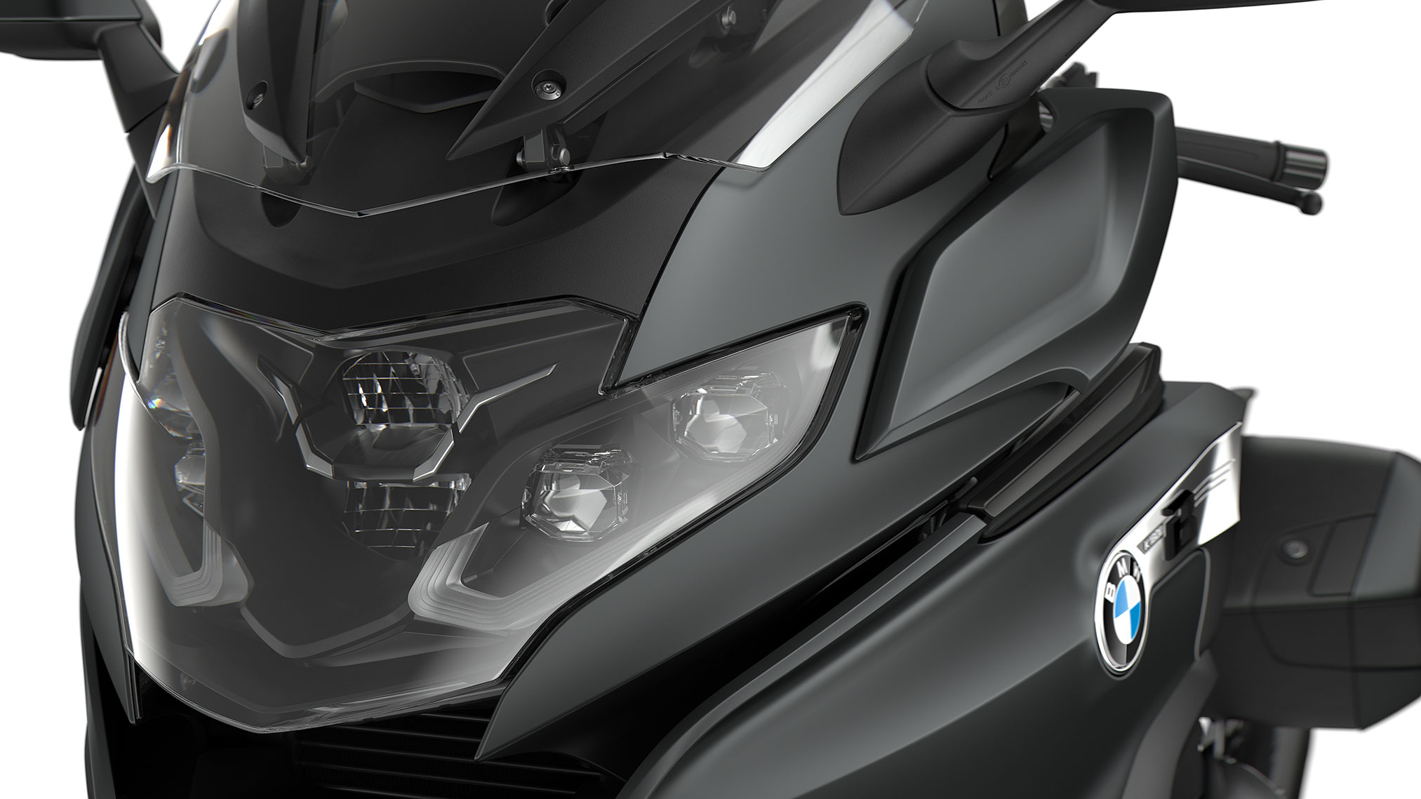This K 1600 B is distinguished by its clear lines. From the front-wheel cover to the engine spoiler and cases, the outline is a homogeneous unit in elegant black.