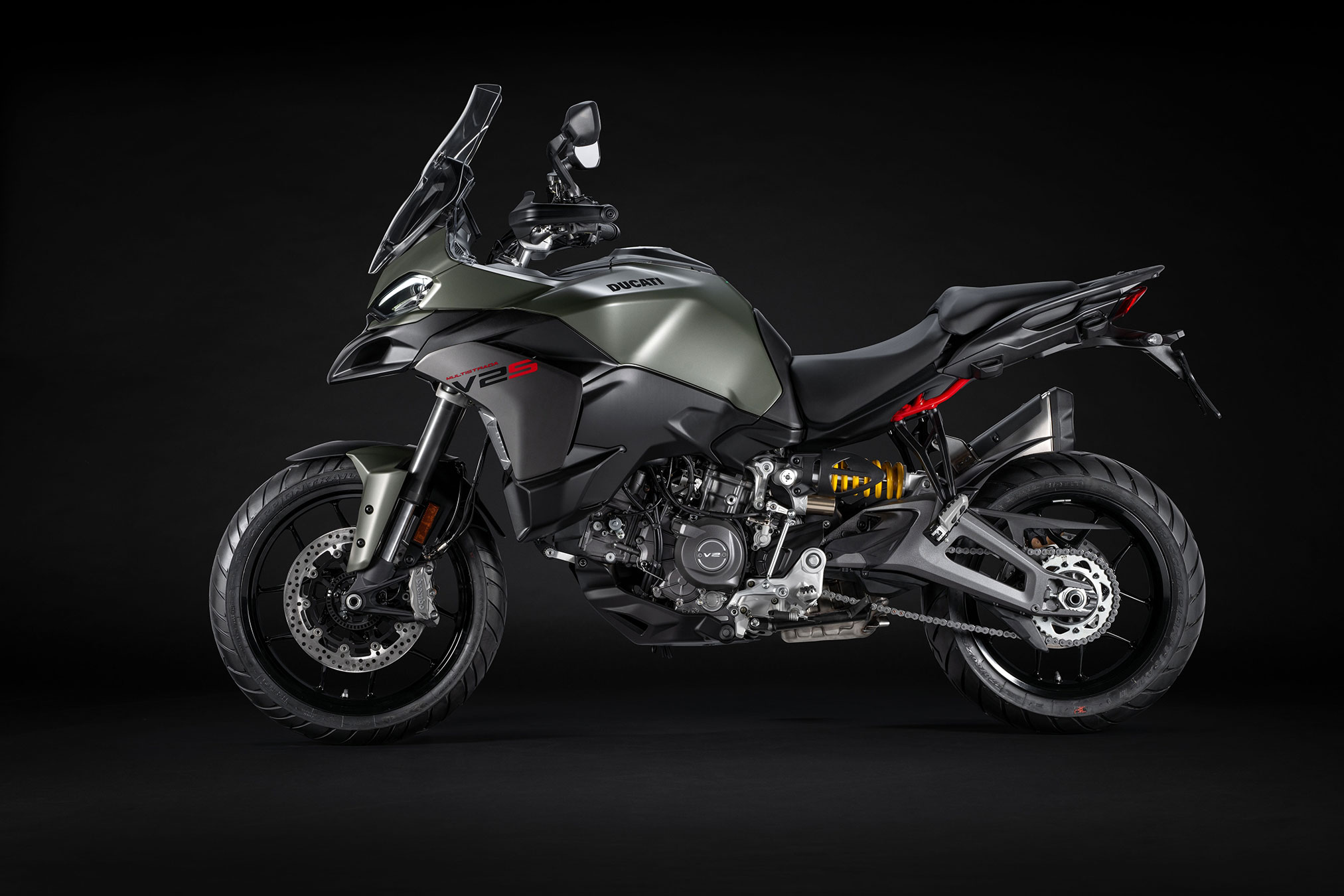 The Multistrada V2 will be available in the standard version, and V2 S, featuring DSS semi-active suspension. The first is offered in the Ducati Red colour, while for the second you can choose between Storm Green and Ducati Red, with the additional possibility of opting for the Travel trim, complete with plastic side cases, centre stand and heated grips. The new Ducati Multistrada V2 will arrive in dealerships in January , also in a 35 kW version for motorcyclists with an A2 license.