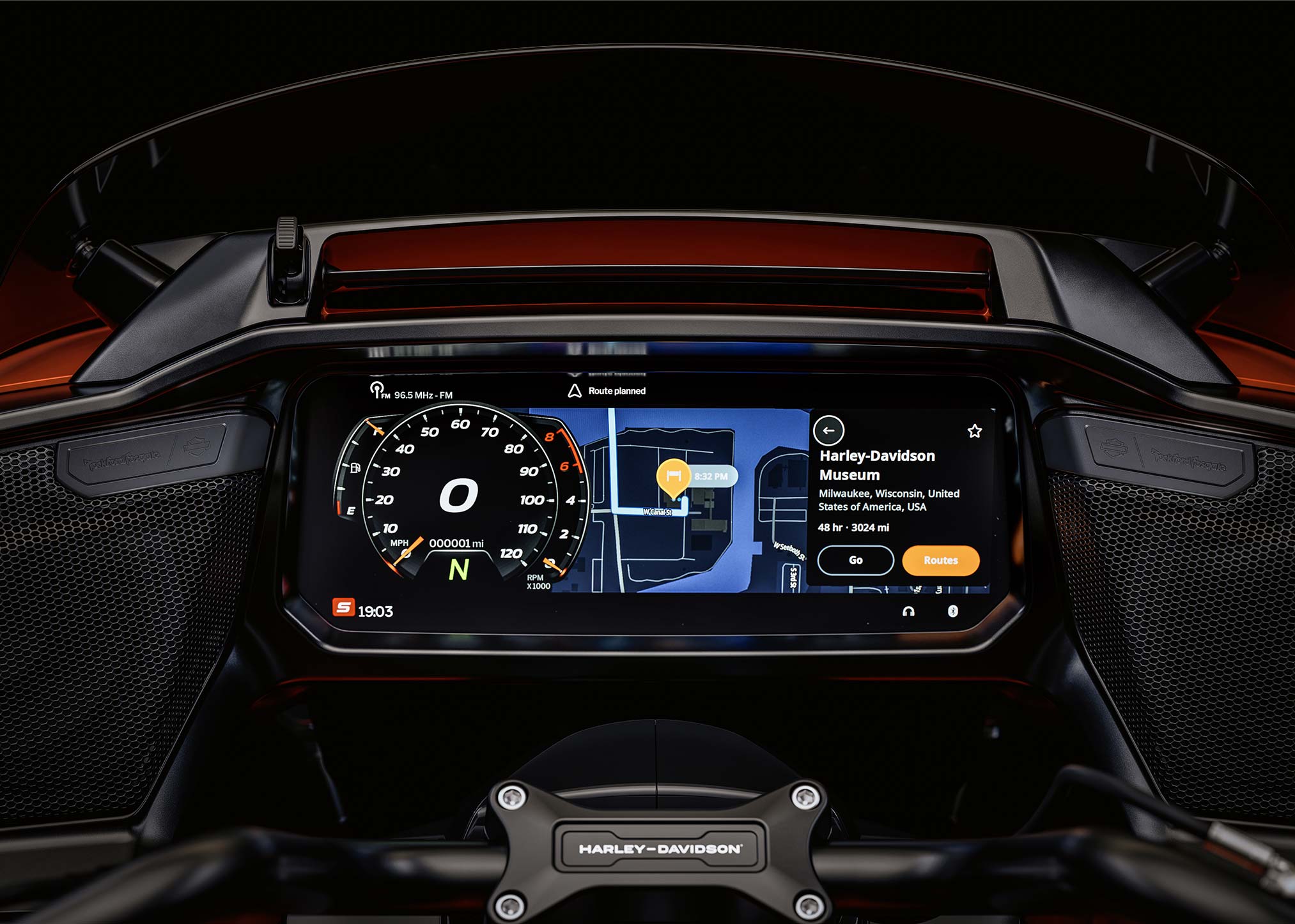 - Wi-Fi connectivity enables wireless connection to a rider’s device to enable Wireless CarPlay and to provide live services like traffic, weather and map updates for navigation.