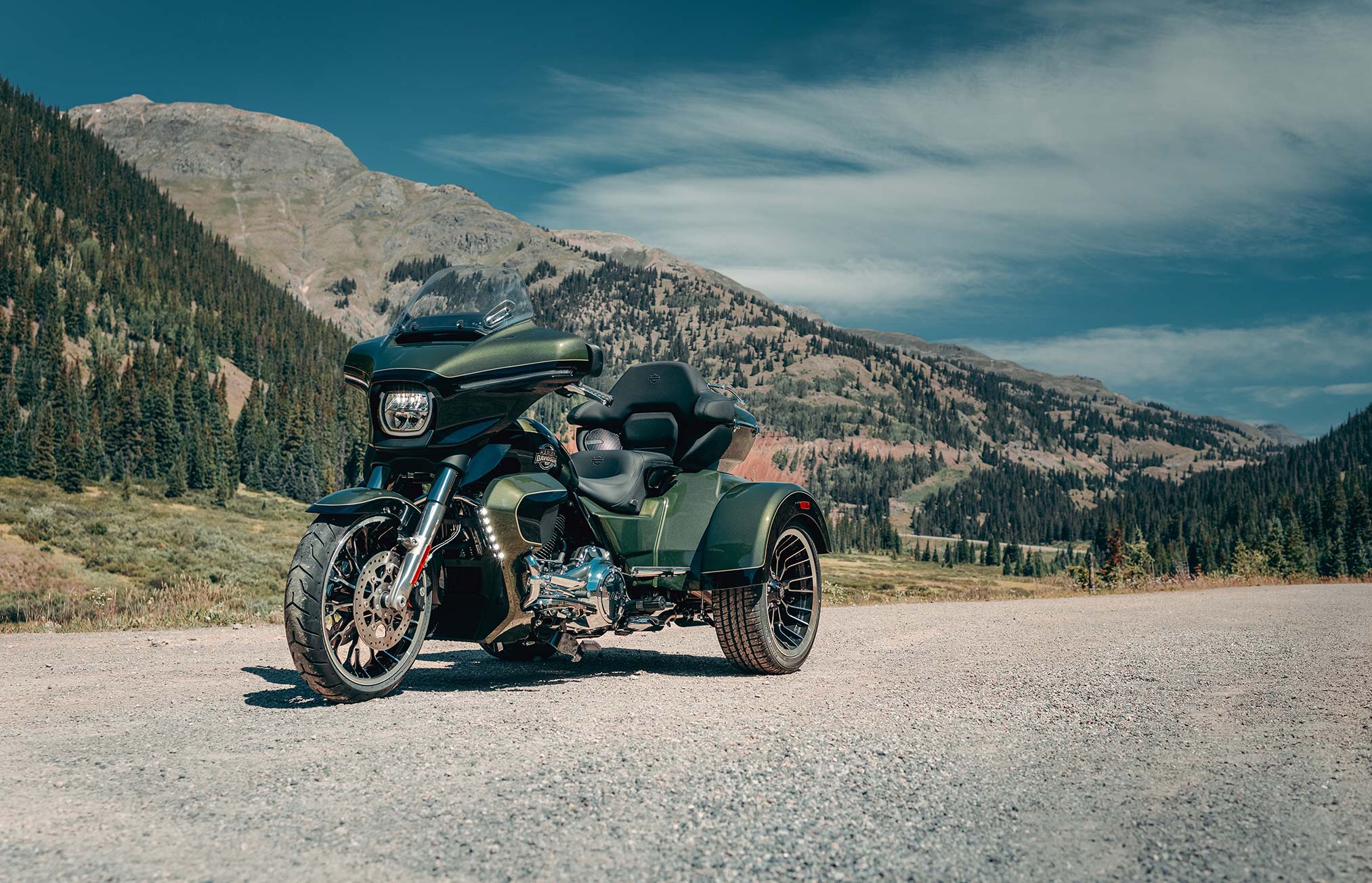 A second-generation Harley-Davidson Trike design introduces all-new rear suspension for significantly improved rider and passenger comfort and the invigorating performance of a new Milwaukee-Eight 117 VVT engine. Both models deliver convenience, technology and styling features that align with premium Harley-Davidson two-wheel Grand American Touring motorcycles.