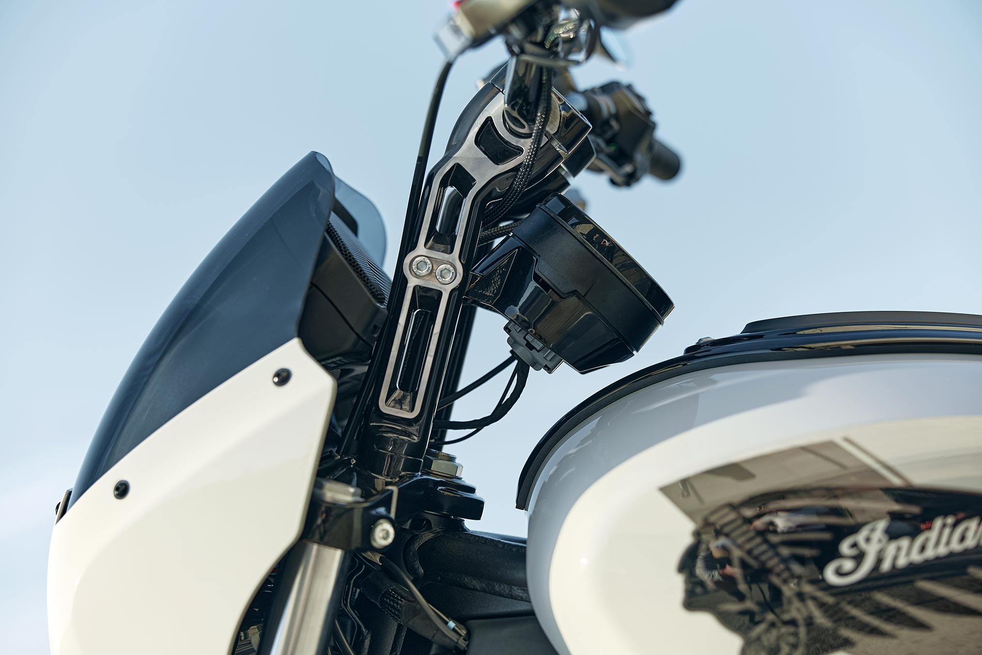 New colour matched fenders and quarter fairing paired with revised graphics give the Sport Scout RT a complete custom-inspired look straight from the factory. Stylish gloss black 152 mm moto style risers with machined highlights come standard. Machined triples and moto handlebars complete the package, both in custom looks and dialled ergonomics. Its sport solo seat provides lower back support and offers incredible comfort on longer rides without compromising the bike’s sleek styling. The Sport Scout RT’s quarter fairing not only keeps wind off the rider’s chest but delivers a stylish and custom look straight from the factory. Sport Scout RT’s 19-inch front wheel adds to the aggressive nature of the bike – both in design and agile handling.