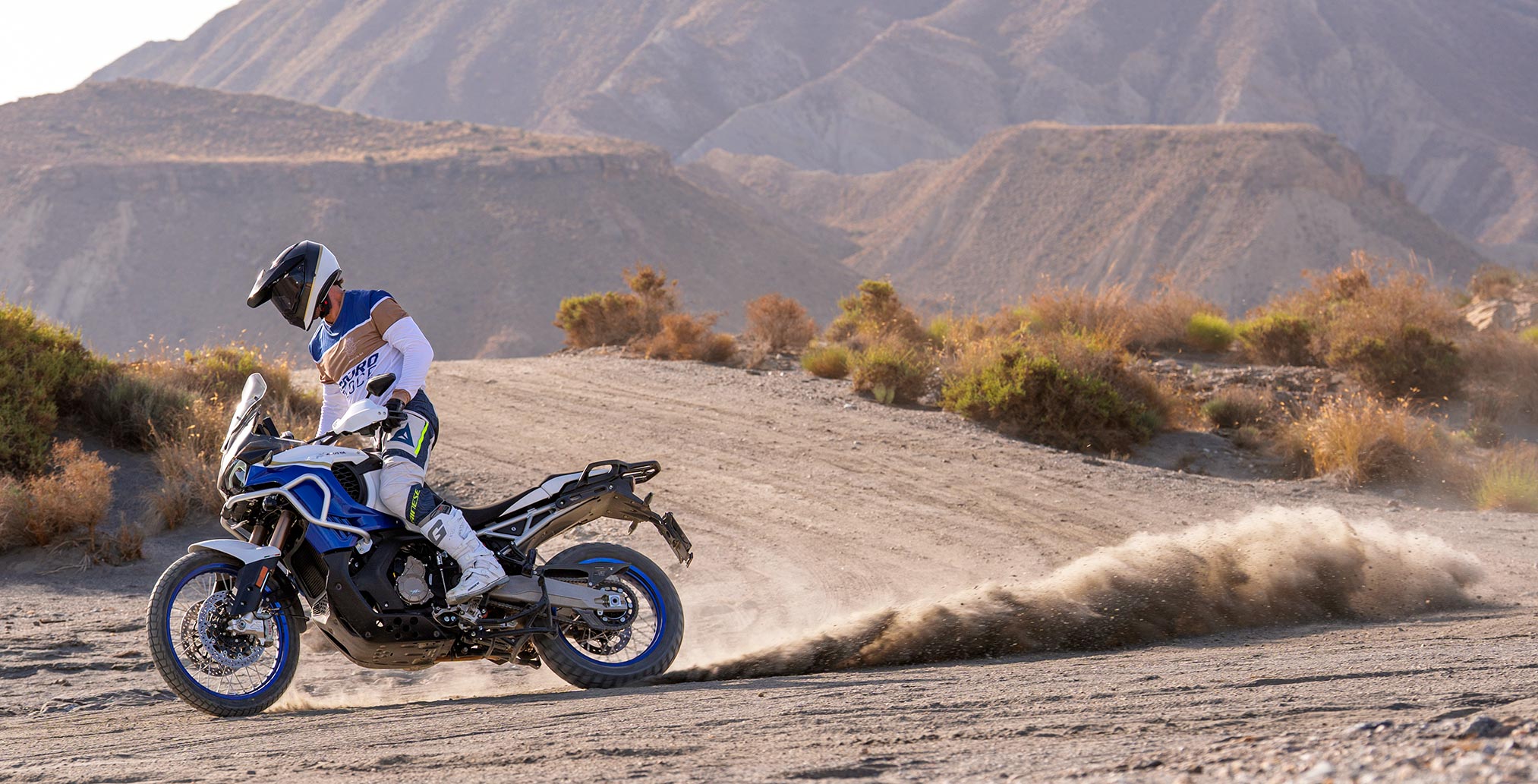 The design of the ergonomic triangle has been studied to offer maximum comfort to the rider and passenger. Seat height is 870 mm, but the adjustable seat means this can be lowered to 850 mm. The shape and padding of the seat have been carefully studied to ensure comfort and adequate support in all conditions of use, including long-range highway travel. Ground clearance is 230 mm, ideal for off-road use.
