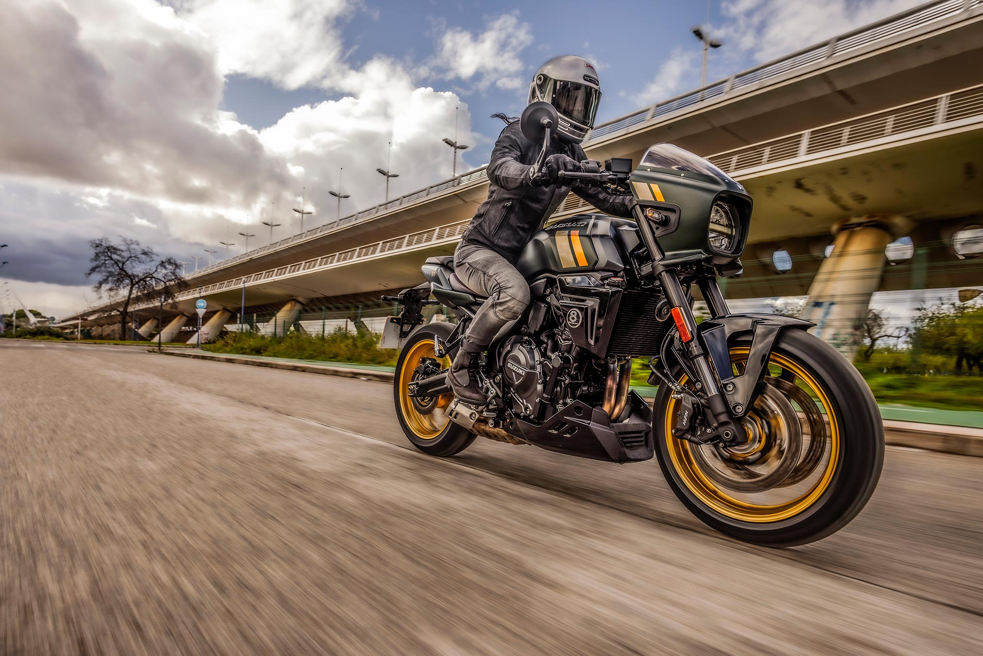 The 8TT adds more pops of colour and retro racing flair thanks to striped decals on its tank and cowling, with matching wheels. A Glass Sparkle Black variant is offset by red wheels and red and gold decals, while a Pearl Matt Shadow Green version is completed with gold wheels and gold and bronze stripes.