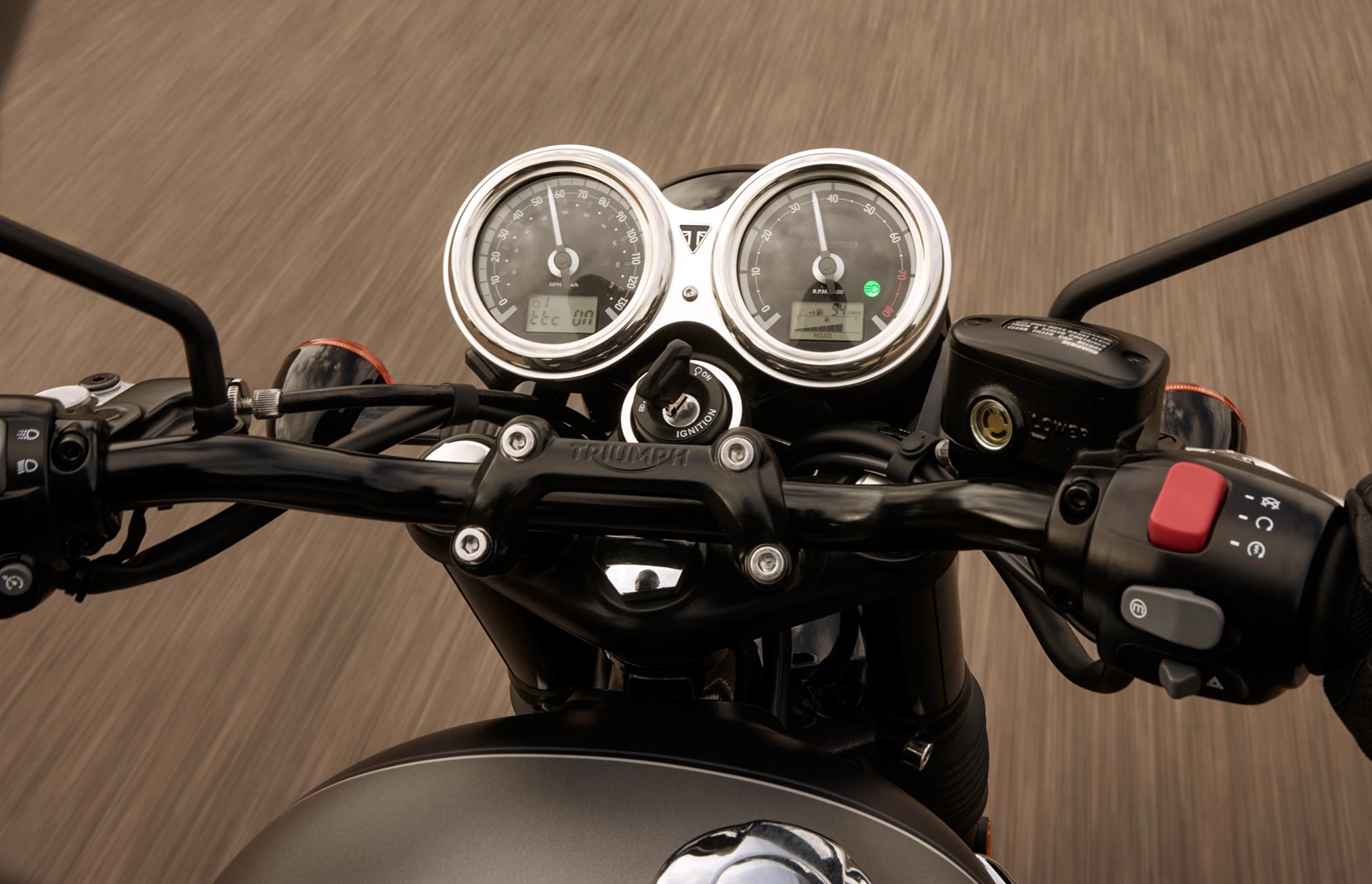 New technology adds modern functionality without detracting from the classic character or looks, including new lean-sensitive Optimized Cornering ABS and Traction Control, a powerful new LED headlight, and a cockpit-mounted USB-C power socket, as well as cruise control fitted as standard for the T120 and T120 Black. Cruise Control is offered as an accessory on the T100.