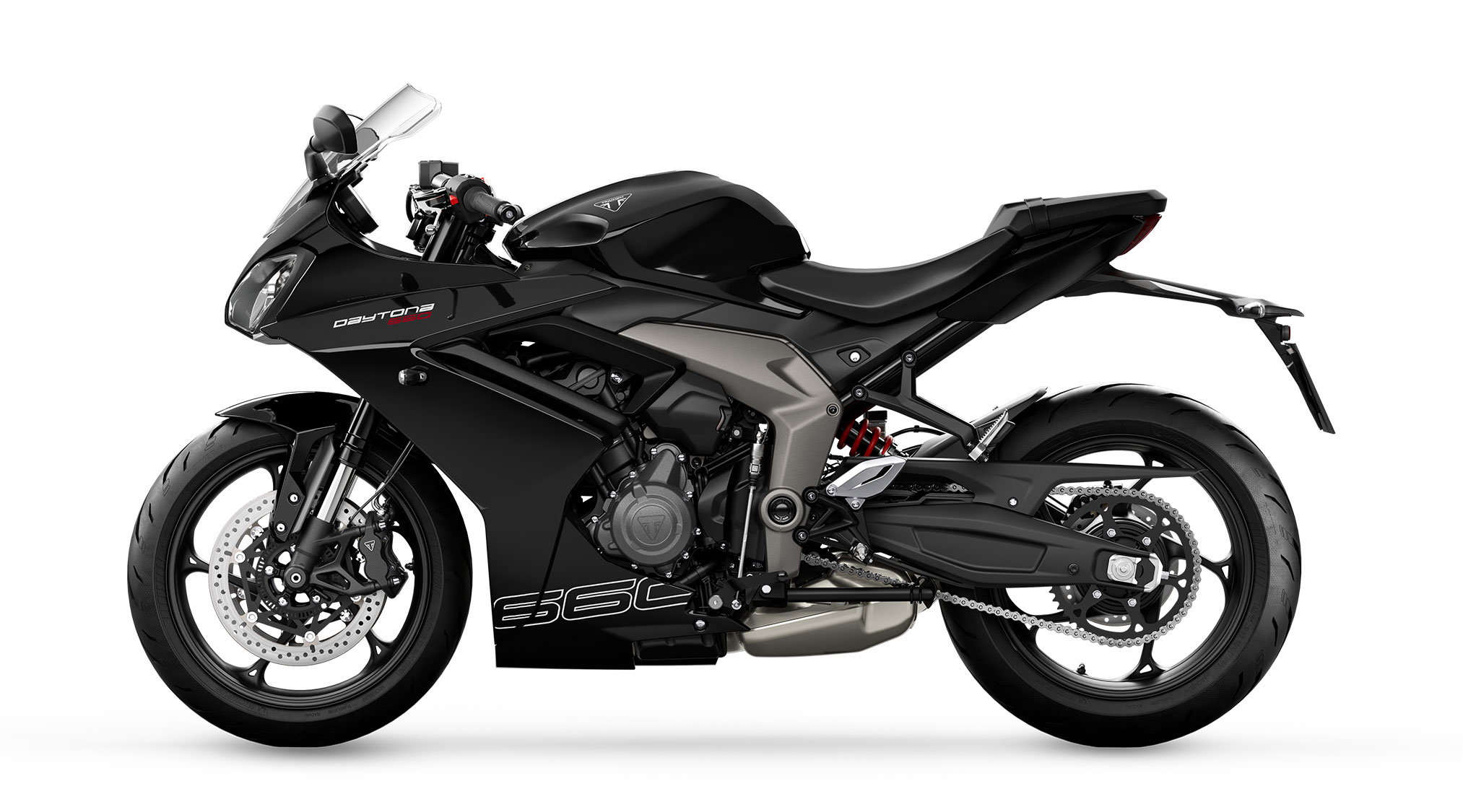 These updates include adjustable Showa front suspension, Triumph Shift Assist now fitted as standard, and grippier Metzeler M9RR Supersport tires. These are complemented by three new dynamic design schemes featuring Diablo Red accents and bold graphics. In keeping with Triumph’s signature attention to detail, the Daytona also gains a new aluminum brake pedal with a clear anodized finish.