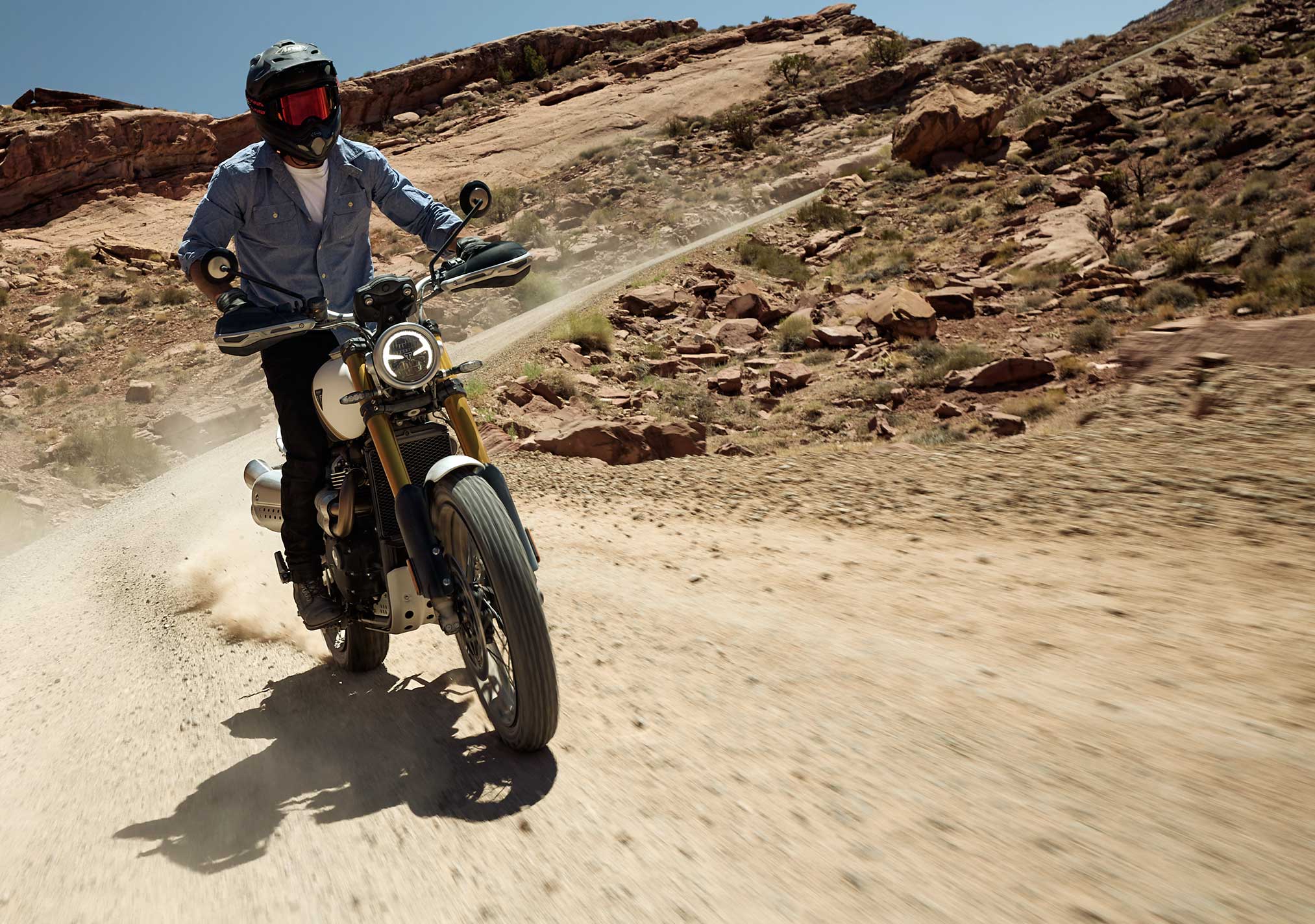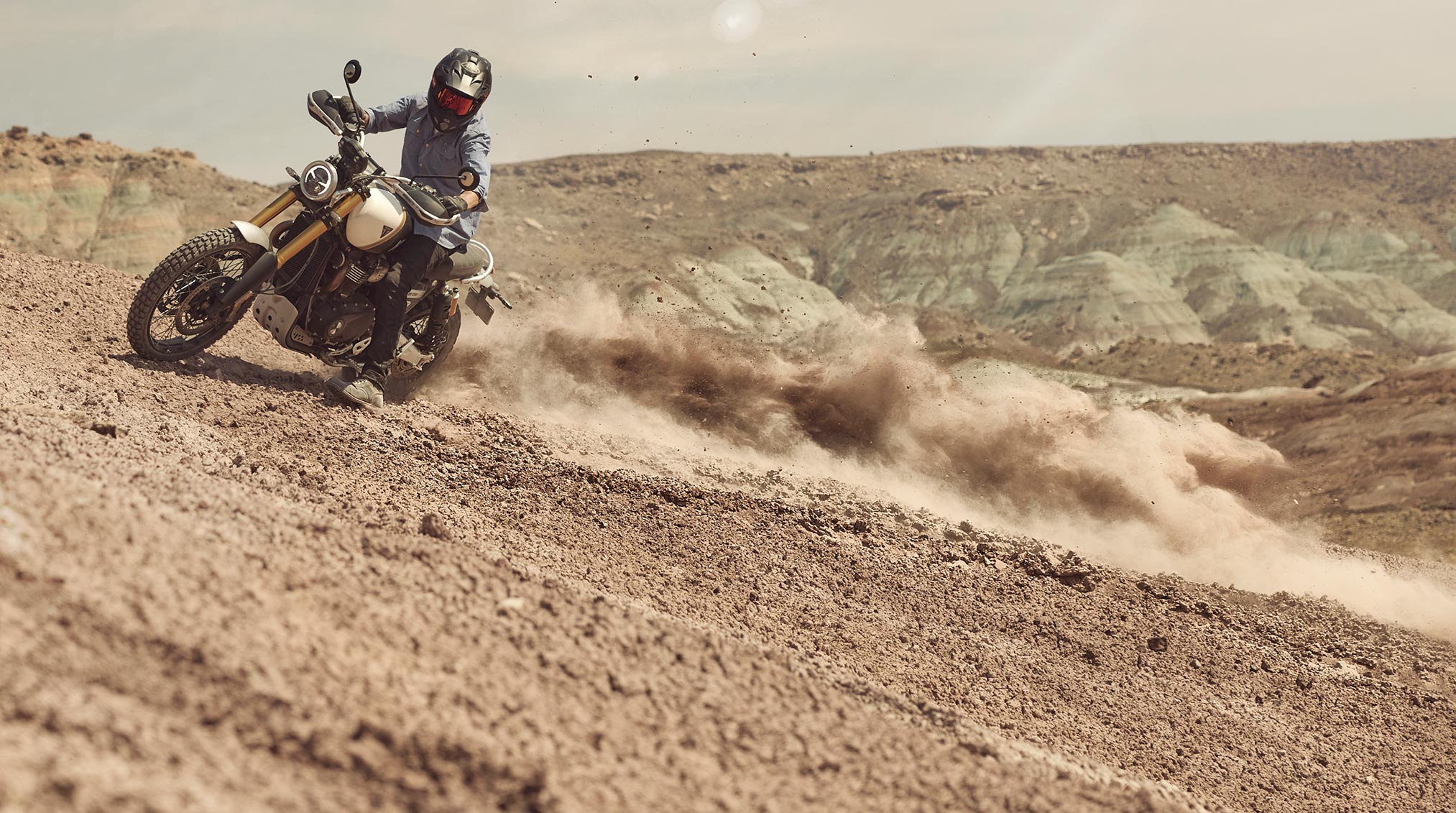 Dedicated Scrambler chassis, long-travel suspension and true all-terrain hardware.