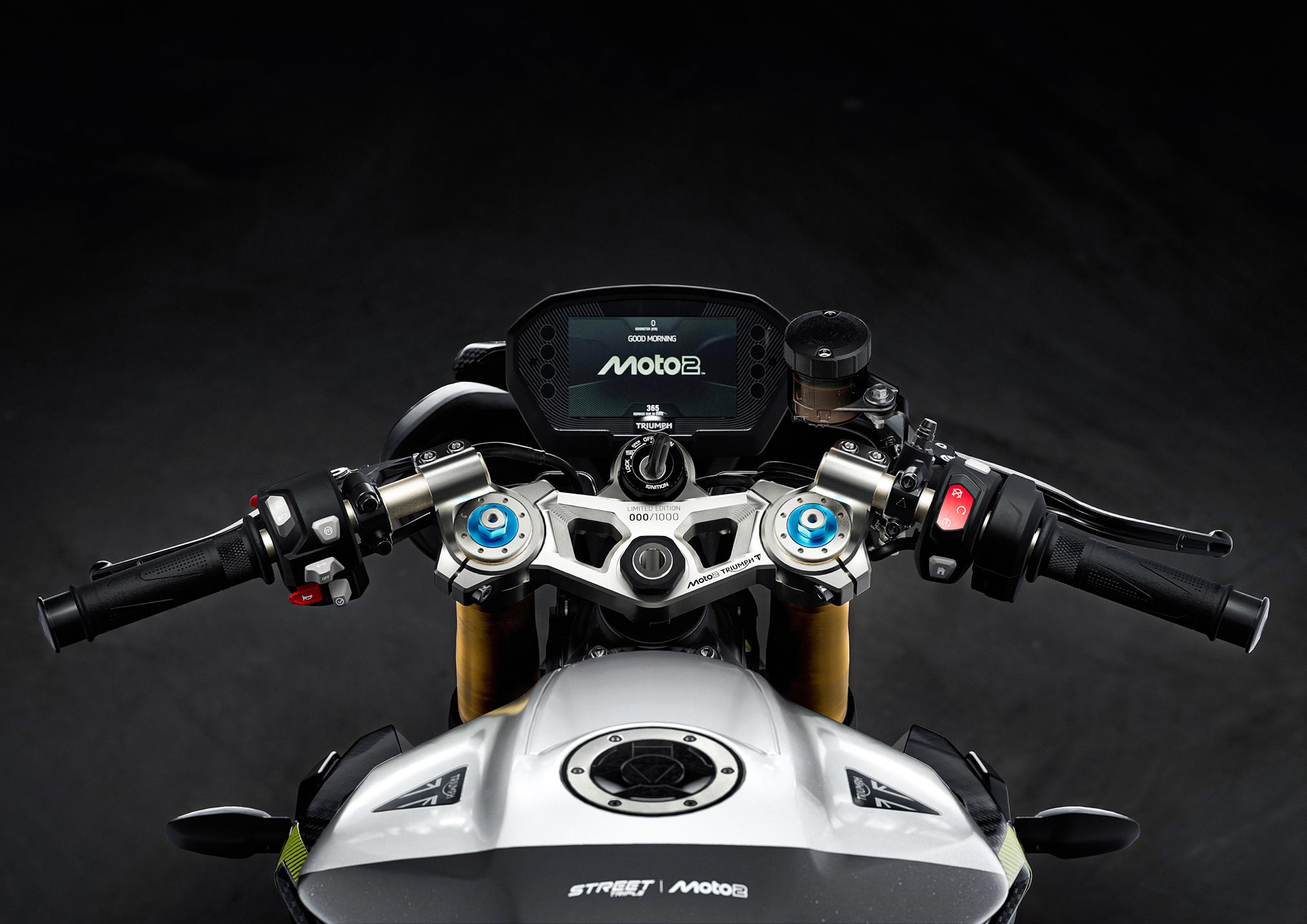 Each motorcycle features an individually numbered billet-machined top yoke, exclusive Moto2 branding across the bike and a unique TFT start-up screen, reminding the rider they’re onboard one of only 1,000 motorcycles.
