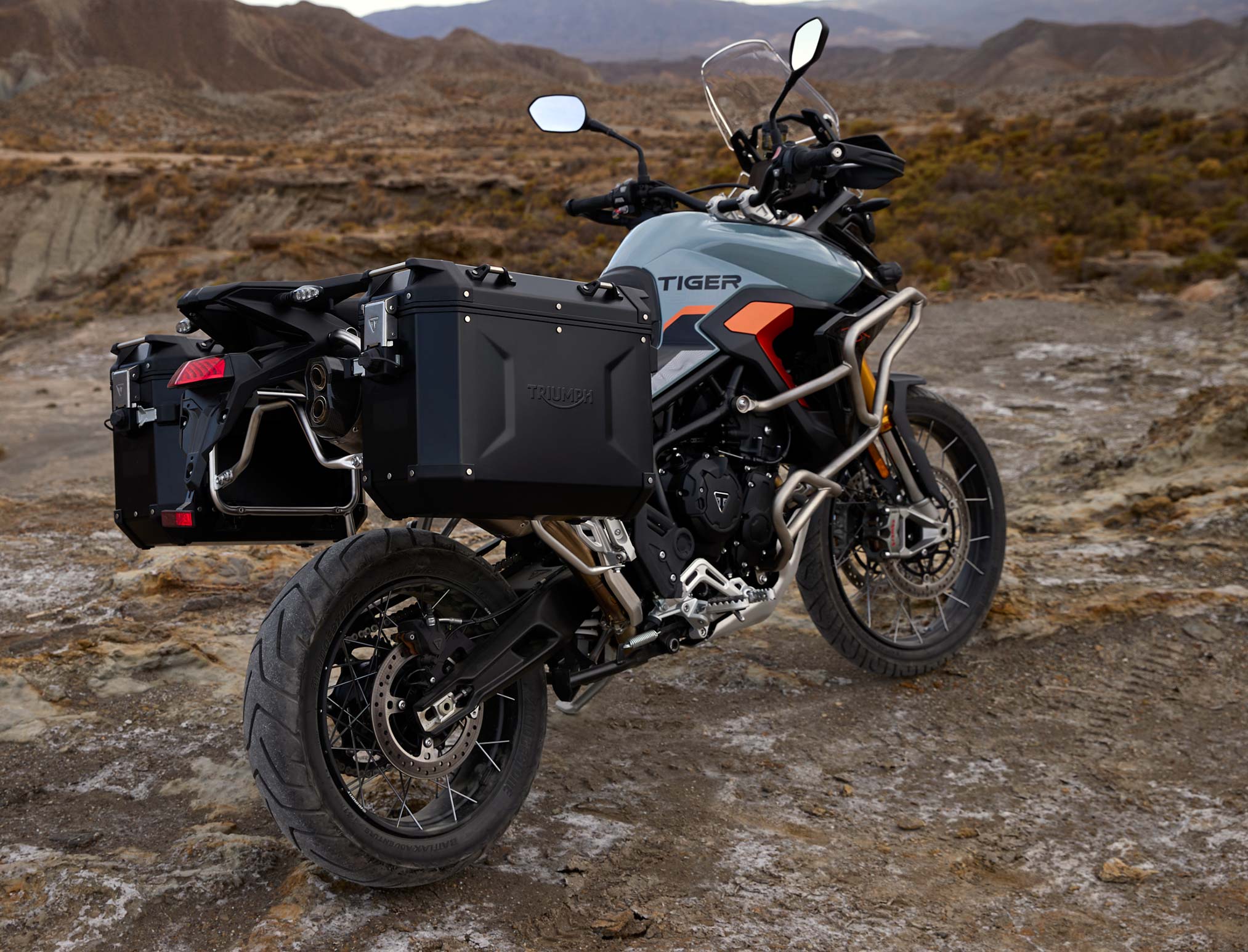 The Tiger Alpine and Desert Editions offer a complete range of over 50 accessories to enhance touring capability and rider comfort. Riders can choose between two premium luggage options, Trekker or Expedition panniers, designed for durability and convenience on long journeys.
