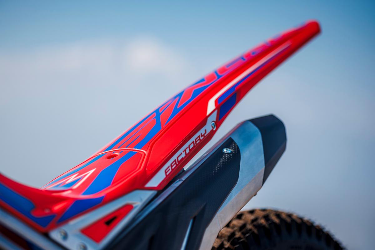 In keeping with Beta tradition, the Trial Factory models are equipped with a more powerful engine than the standard model, thanks to the lighter weight of the cases, the new titanium exhaust system, and the dedicated cylinder. The bike is more responsive, while the engine ensures greater performance and rideability, guaranteeing explosive power and performance at a higher level when needed. Handling is exemplary, and vibration is reduced to a minimum.