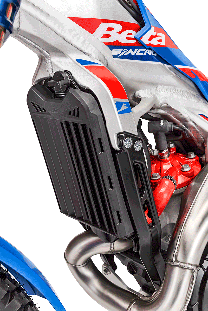The use of a dual sparkplug engine on the 300 2-stroke displacement represents a significant step forward in terms of efficiency and consistent performance. The presence of two ignition points also ensures more uniform combustion within the combustion chamber for the Sincro engine, reducing detonation and improving smoothness at low revs, which is crucial in trials where low speed control is everything. This system ensures faster and more controlled combustion, optimizing engine response and increasing manageability. In addition, the double sparkplug contributes to better engine heat management, reducing the risk of fouling and promoting consistent performance even under prolonged use. The result is a more responsive, smoother, and more powerful bike, capable of tackling technical sections with greater precision and confidence.