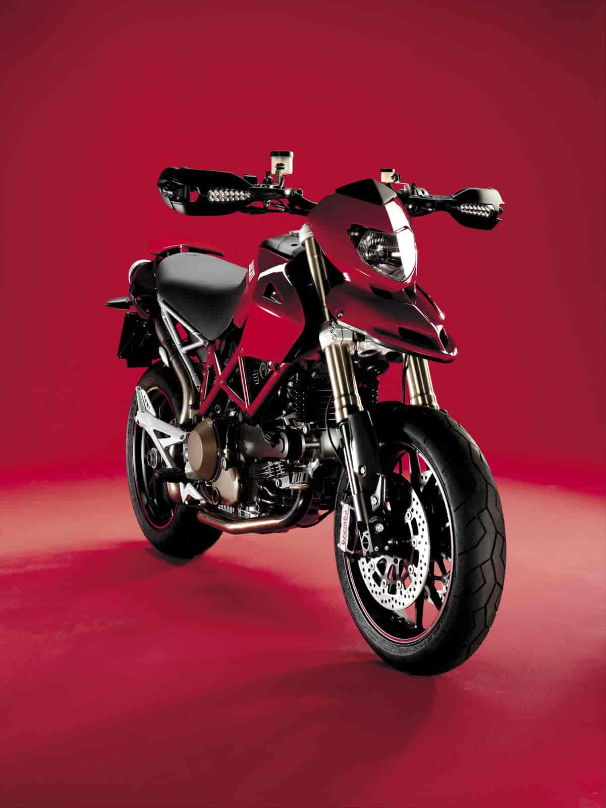 Riding the Hypermotard lets you rule the road. Wide, tapered section handlebars transfer control of the tarmac to the rider and a full length seat eases fore and aft movement – up front when entering the turns, then slide back for maximum traction on exit.